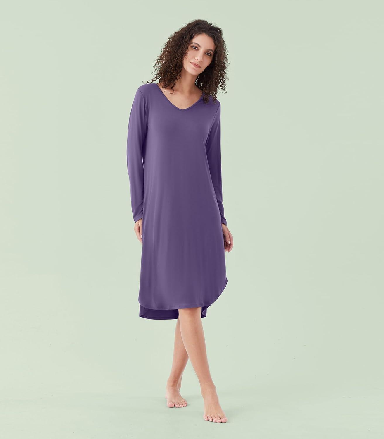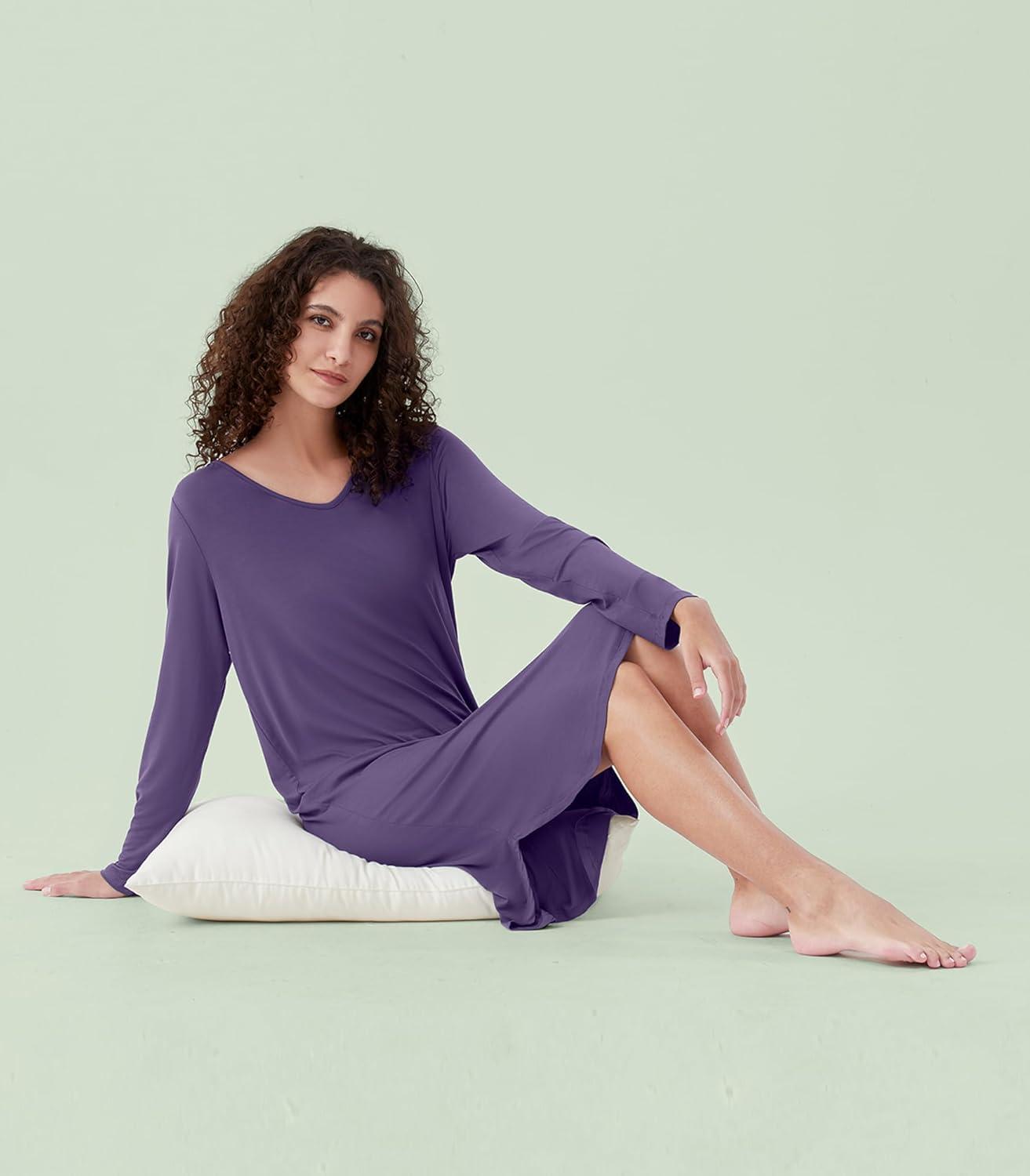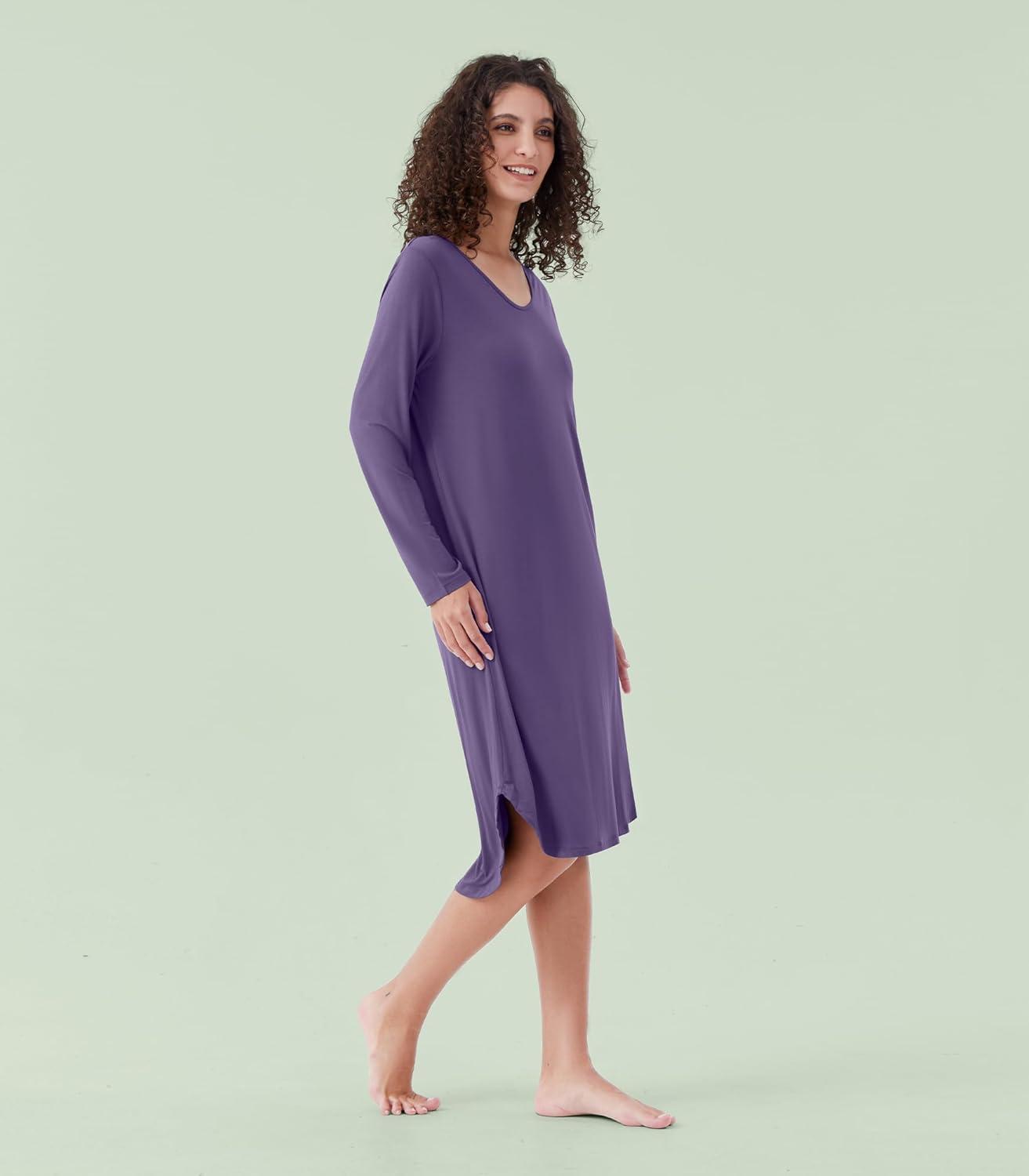 WiWi Bamboo Nightgowns for Women Soft Long Sleeve Sleep Shirt Sleepwear Comfy Loungewear Plus Size Nightshirts S-4X(A-lavender)