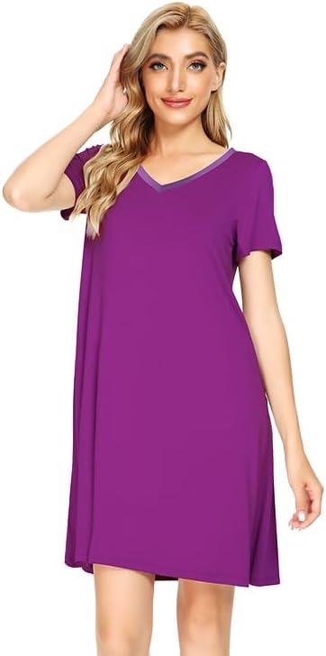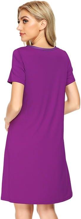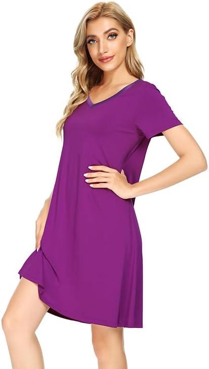 WiWi Bamboo Nightgowns for Women Soft Night Shirt Sleepwear Short Sleeve Lightweight Plus Size Sleepshirts S-4X(A-purple)