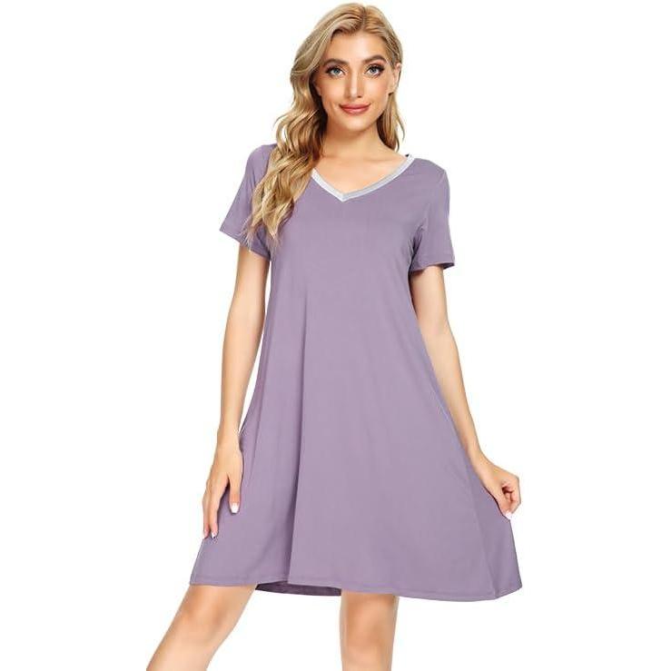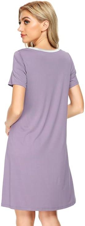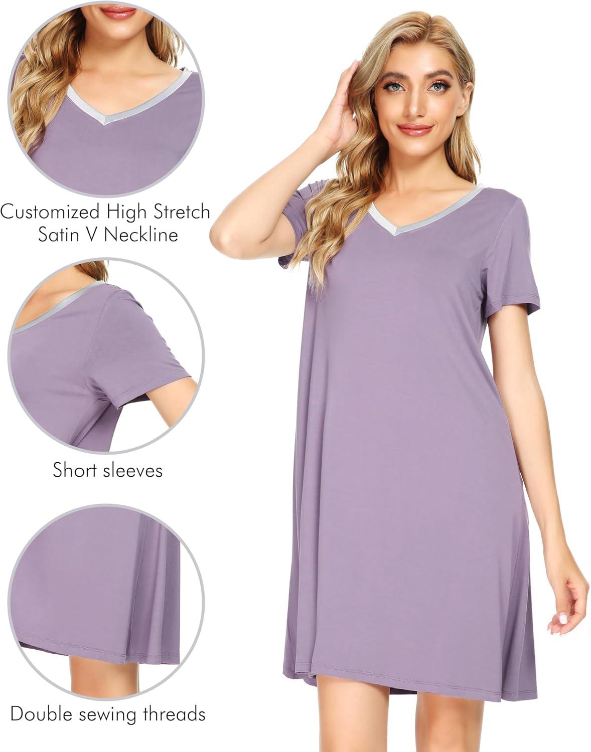 WiWi Bamboo Nightgowns for Women Soft Night Shirt Sleepwear Short Sleeve Lightweight Plus Size Sleepshirts S-4X(A-violet)