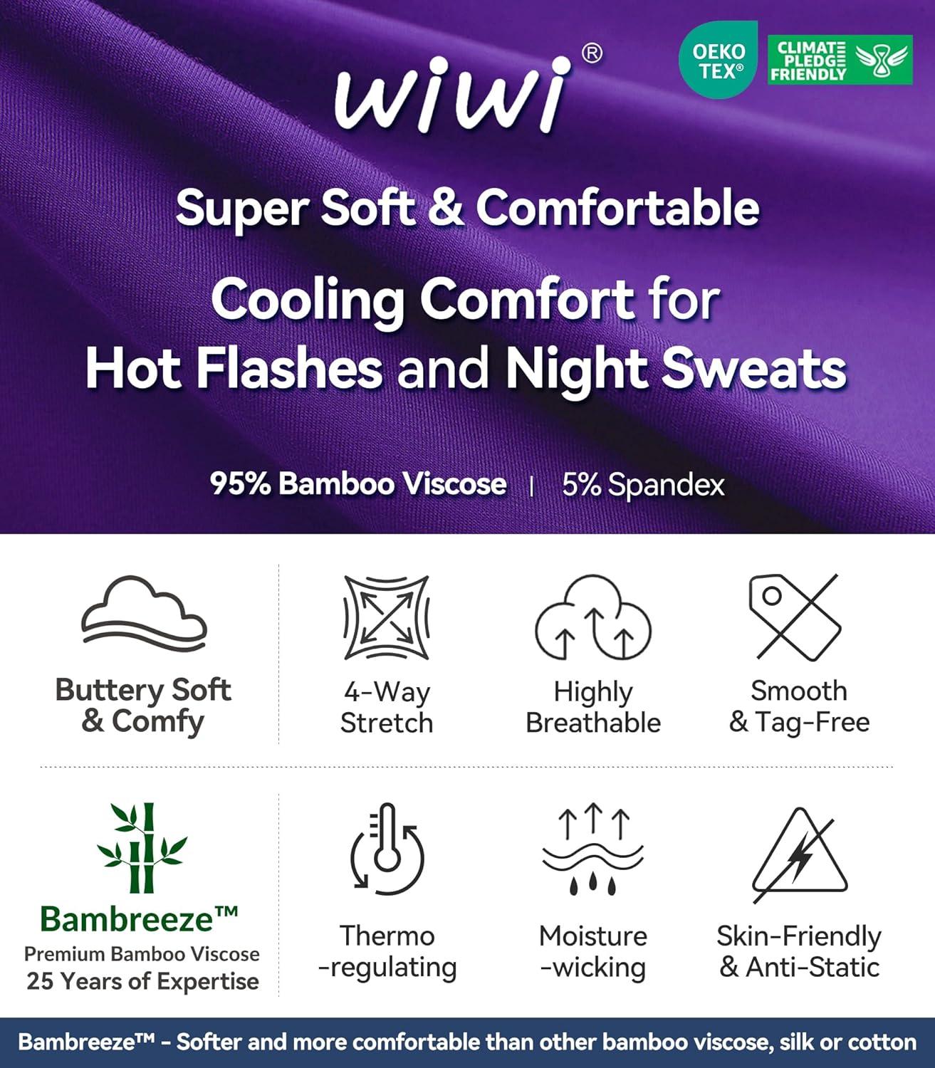 WiWi Bamboo Viscose Nightgowns for Women 3/4 Sleeve Nightshirts Sleep Shirt Plus Size Sleepwear Pajamas Dress S-4X(A-lilac)
