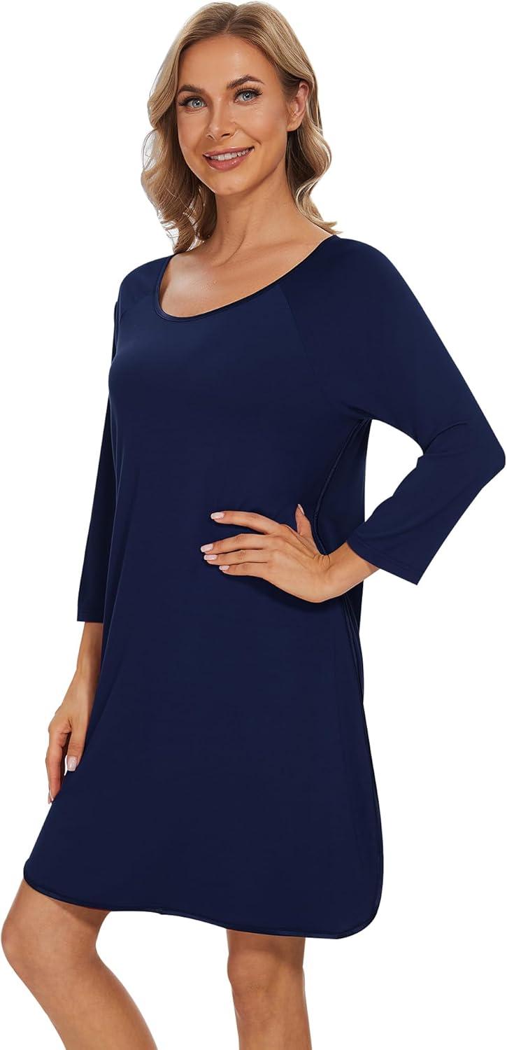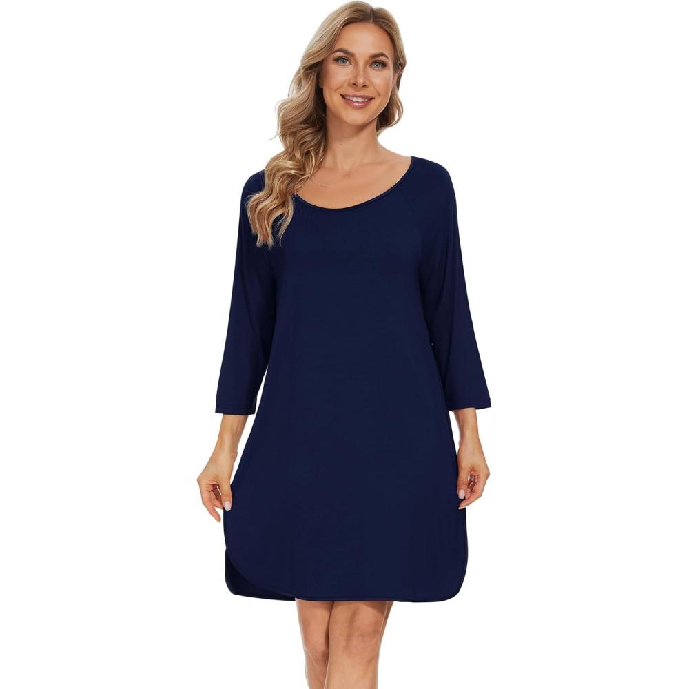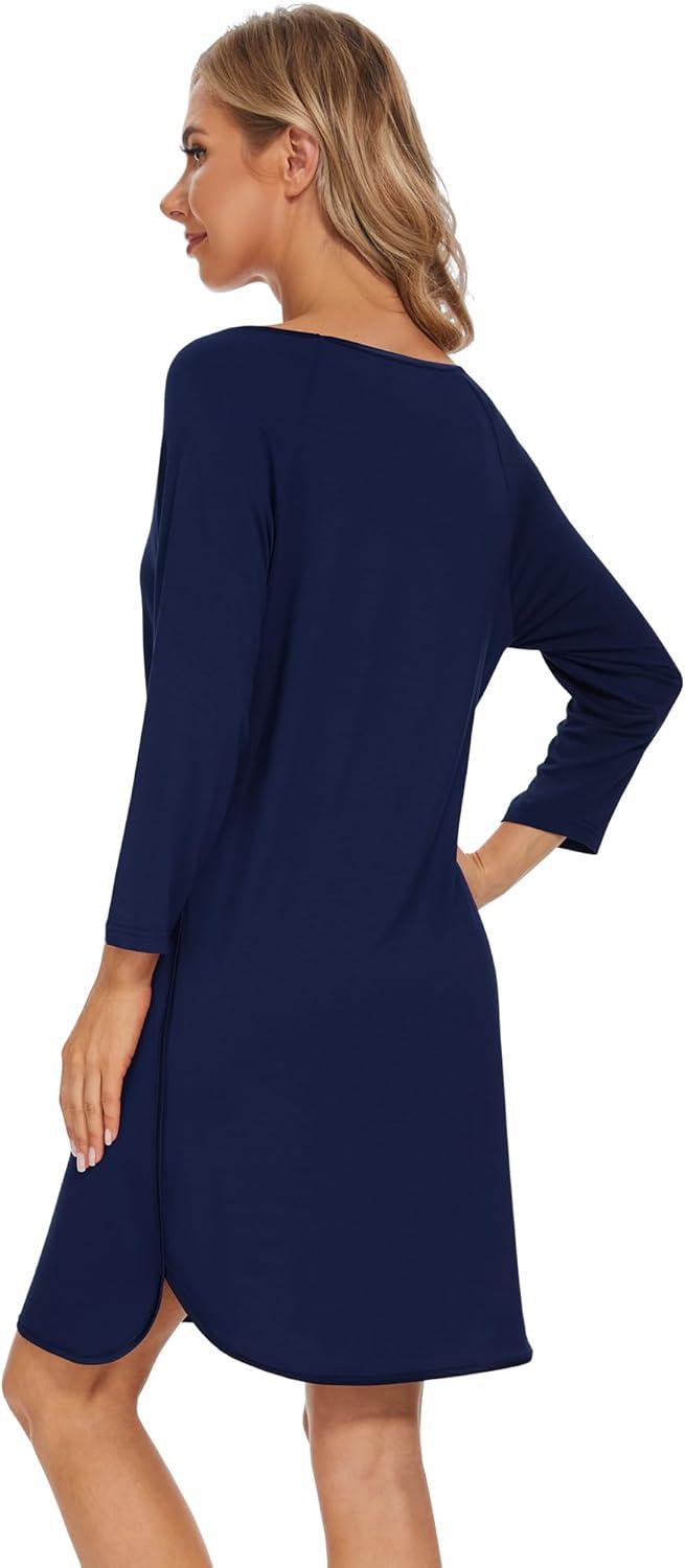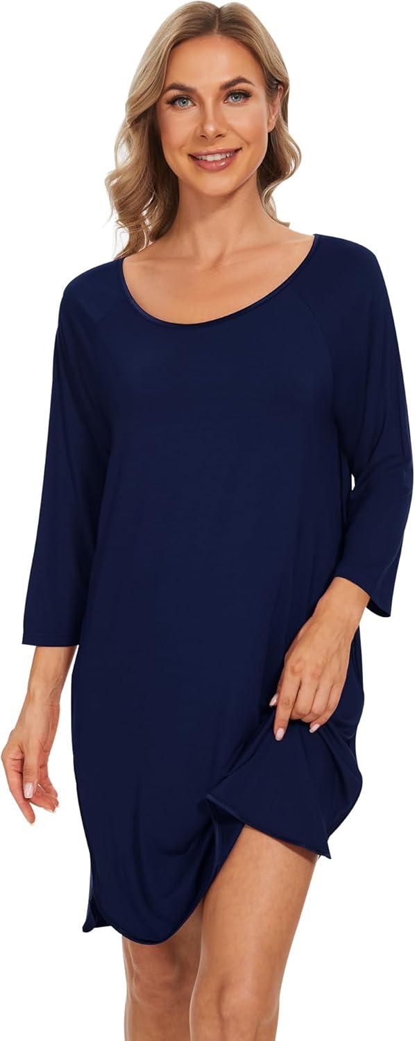 WiWi Bamboo Viscose Nightgowns for Women 3/4 Sleeve Nightshirts Sleep Shirt Plus Size Sleepwear Pajamas Dress S-4X(E-navy)