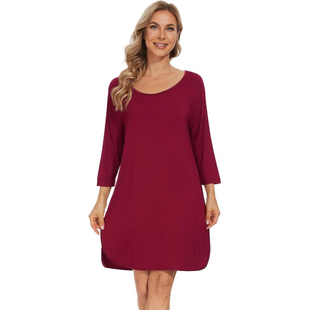 imageWiWi Bamboo Viscose Nightgowns for Women 34 Sleeve Nightshirts Sleep Shirt Plus Size Sleepwear Pajamas Dress S4XEwine