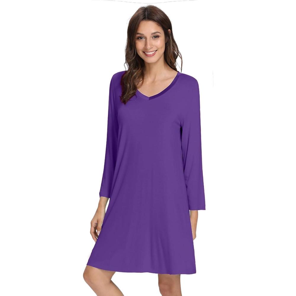 imageWiWi Bamboo Viscose Nightgowns for Women Soft Long Sleeve Nightgown Plus Size Sleep Shirt Pajama Gown Sleepwear S4XAlight Purple