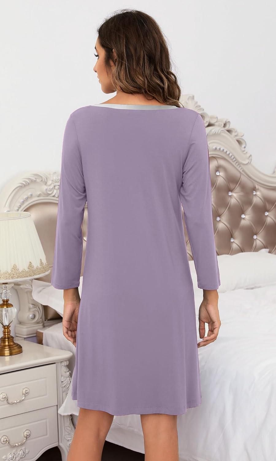 WiWi Bamboo Viscose Nightgowns for Women Soft Long Sleeve Nightgown Plus Size Sleep Shirt Pajama Gown Sleepwear S-4X(A-violet)
