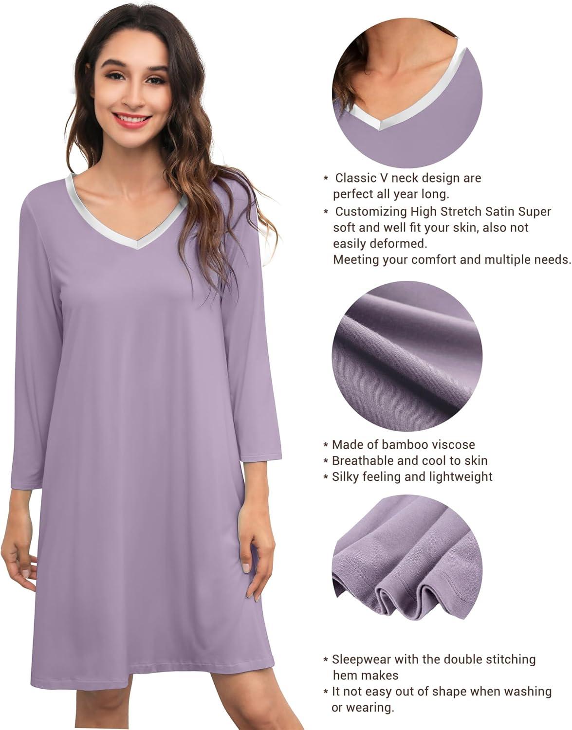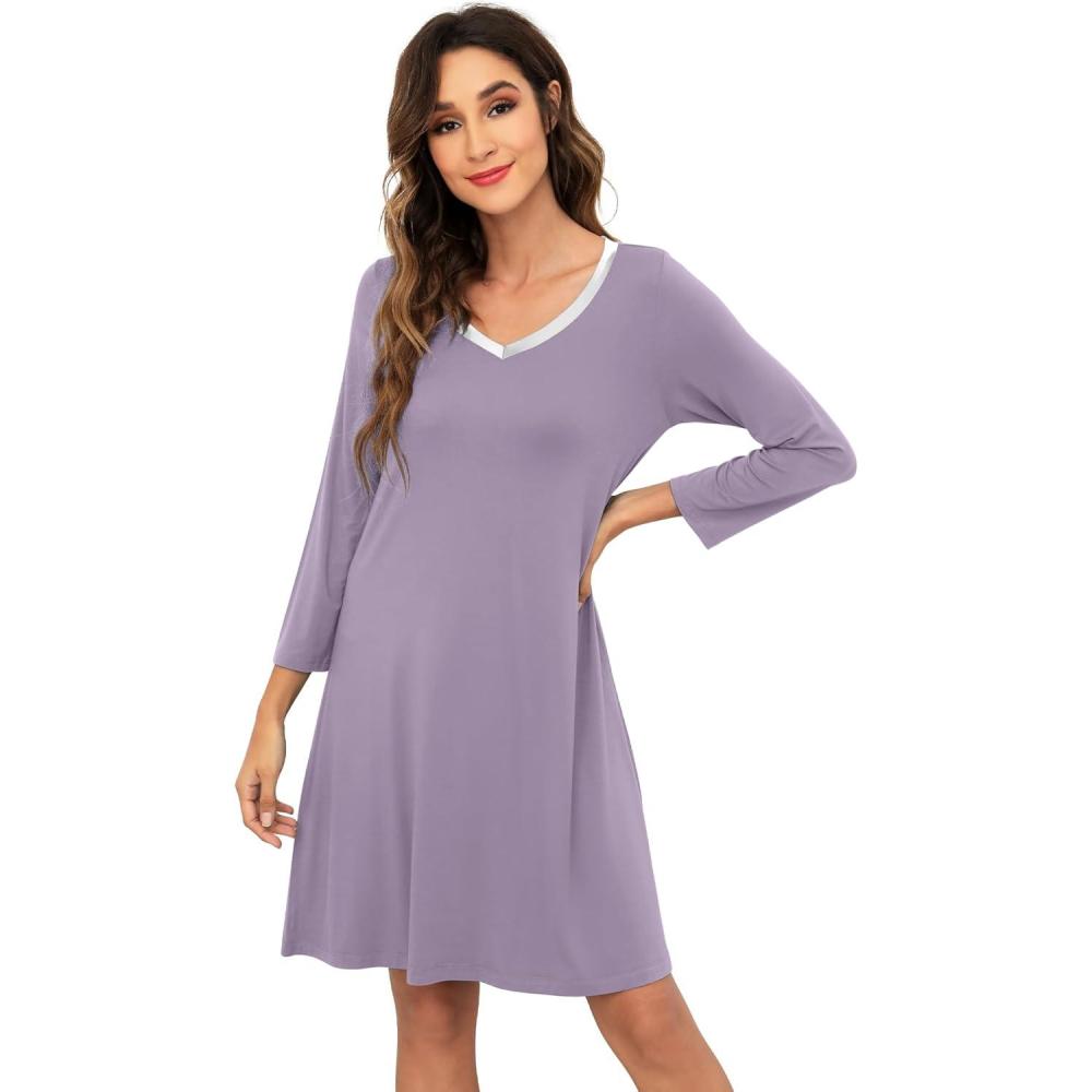 imageWiWi Bamboo Viscose Nightgowns for Women Soft Long Sleeve Nightgown Plus Size Sleep Shirt Pajama Gown Sleepwear S4XAviolet