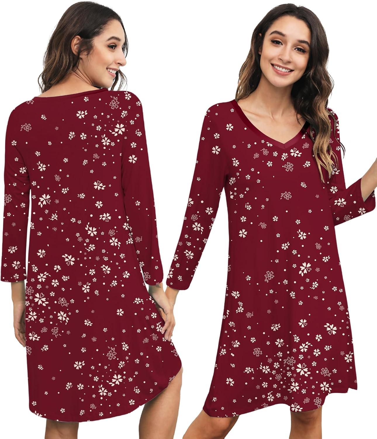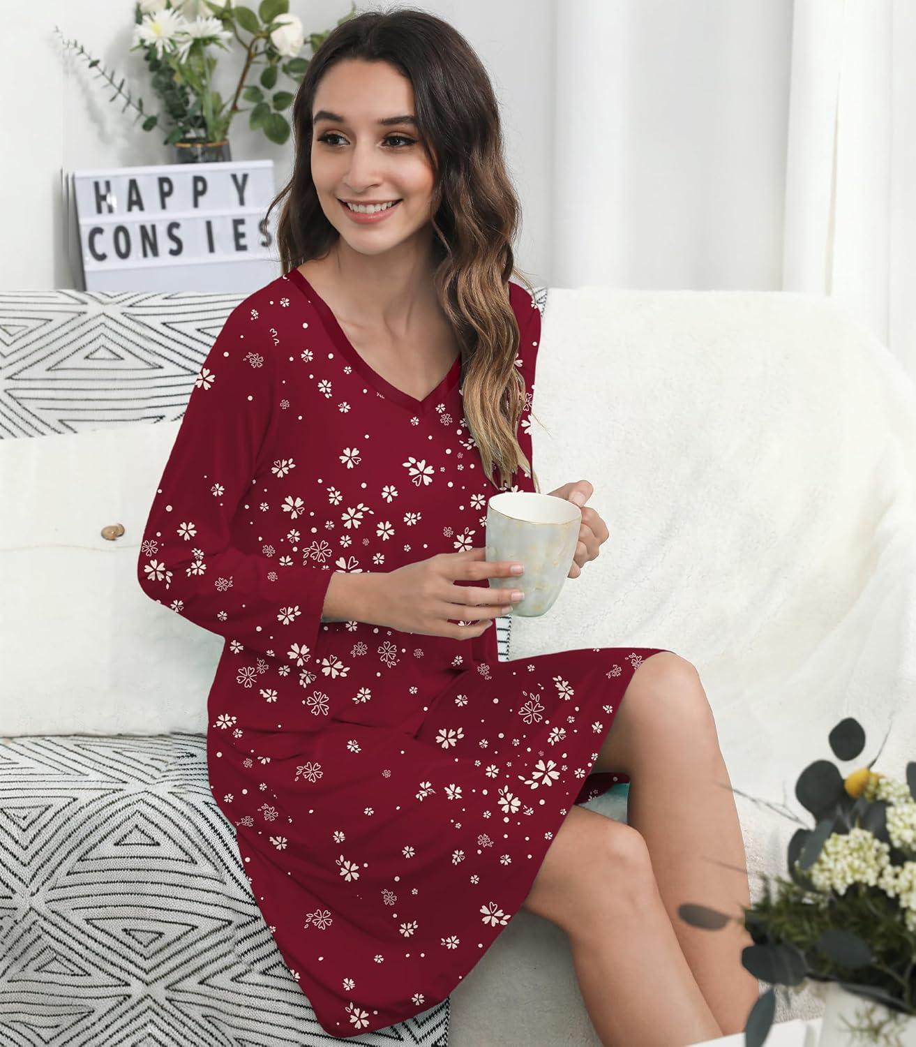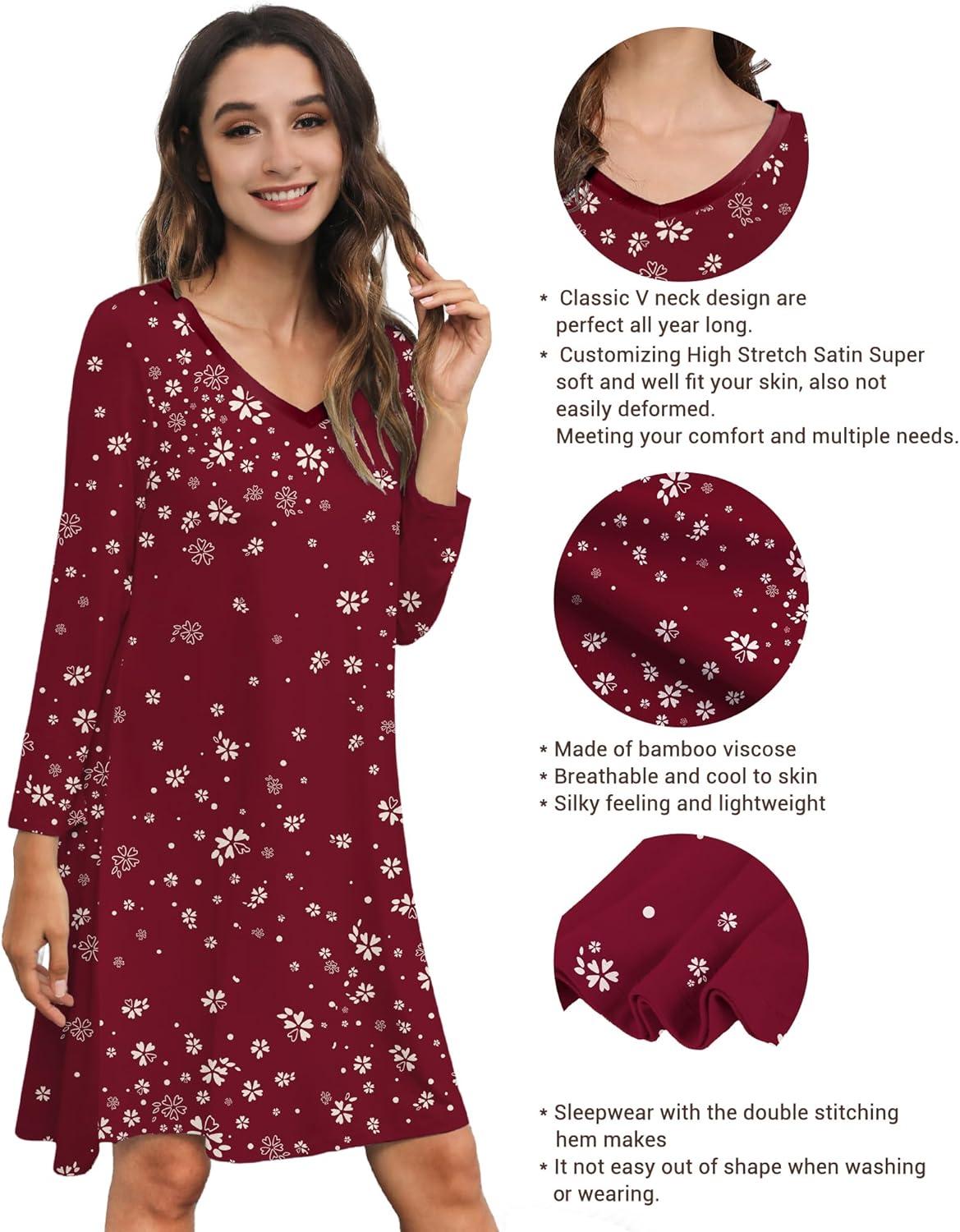WiWi Bamboo Viscose Nightgowns for Women Soft Long Sleeve Nightgown Plus Size Sleep Shirt Pajama Gown Sleepwear S-4X(A-wine Floral)