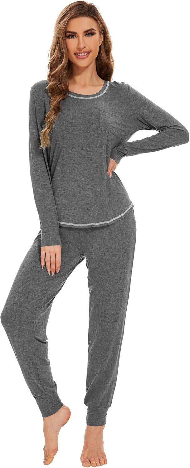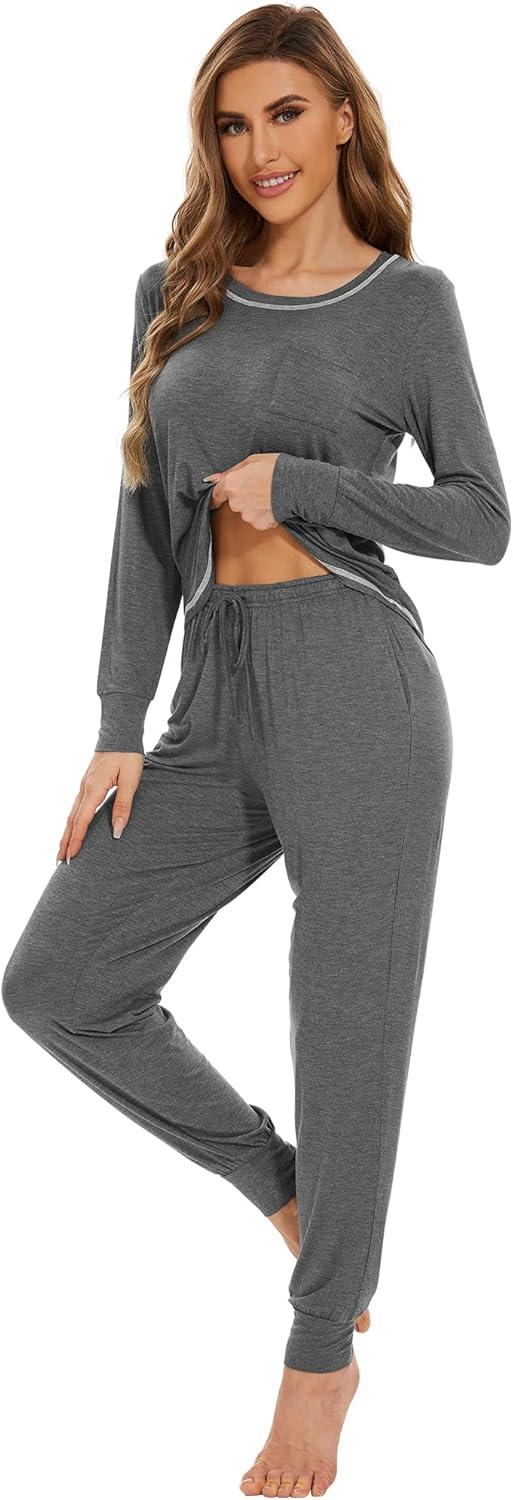 WiWi Bamboo Viscose Pajamas Set for Women Long Sleeve Sleepwear Soft Loungewear Pjs Jogger Pants Lounge Sets S-XXL(A-charcoal Heather)