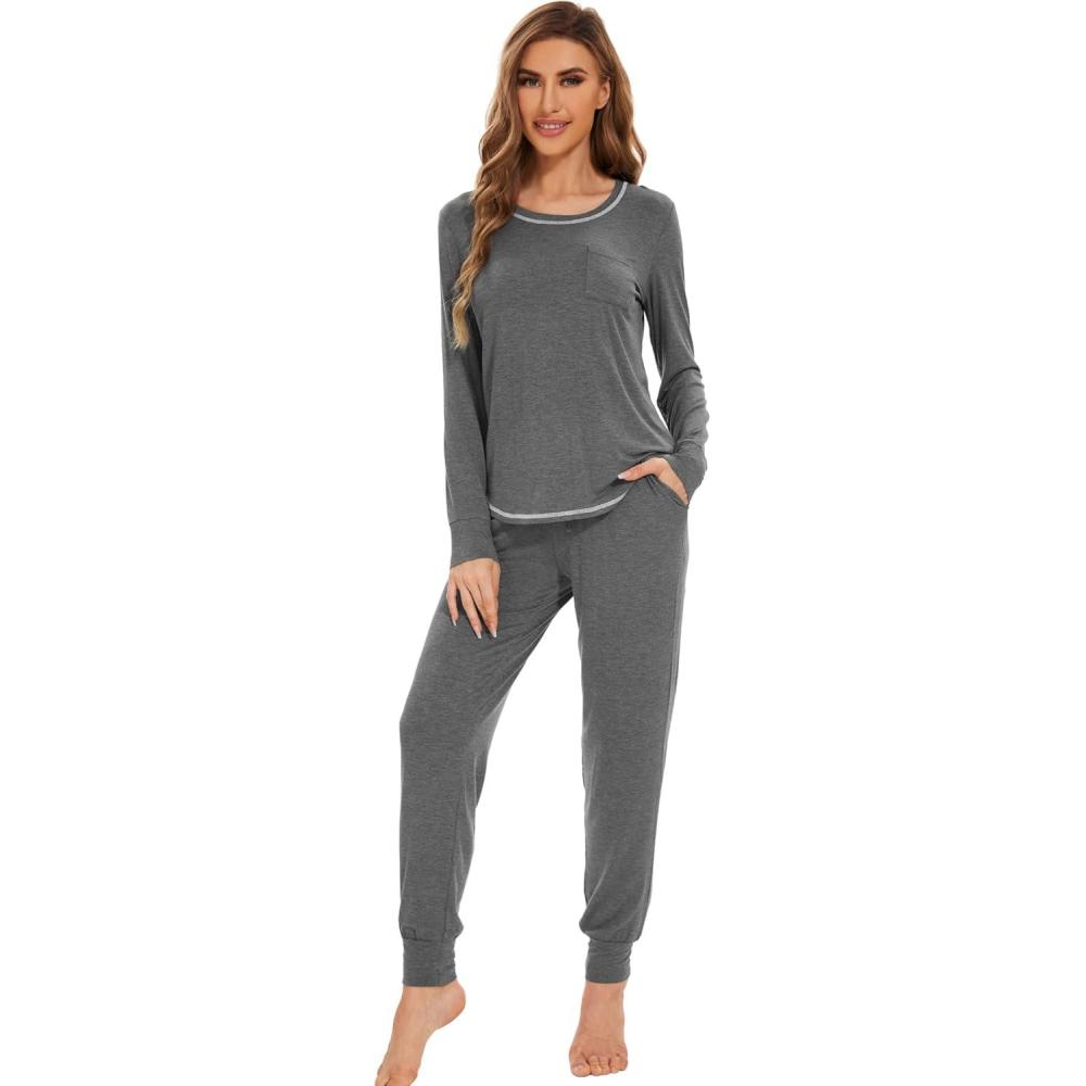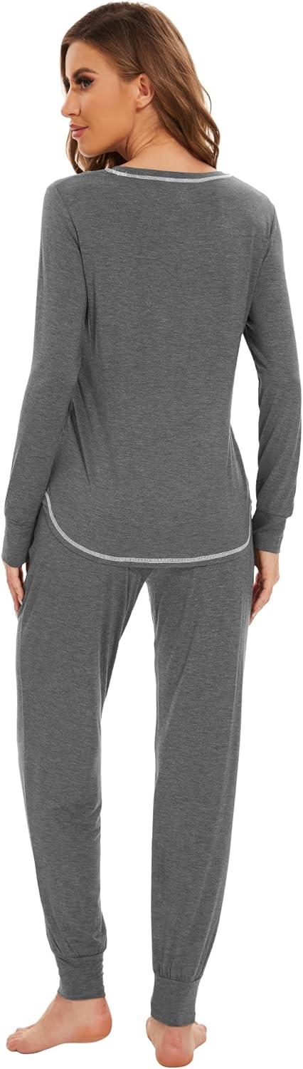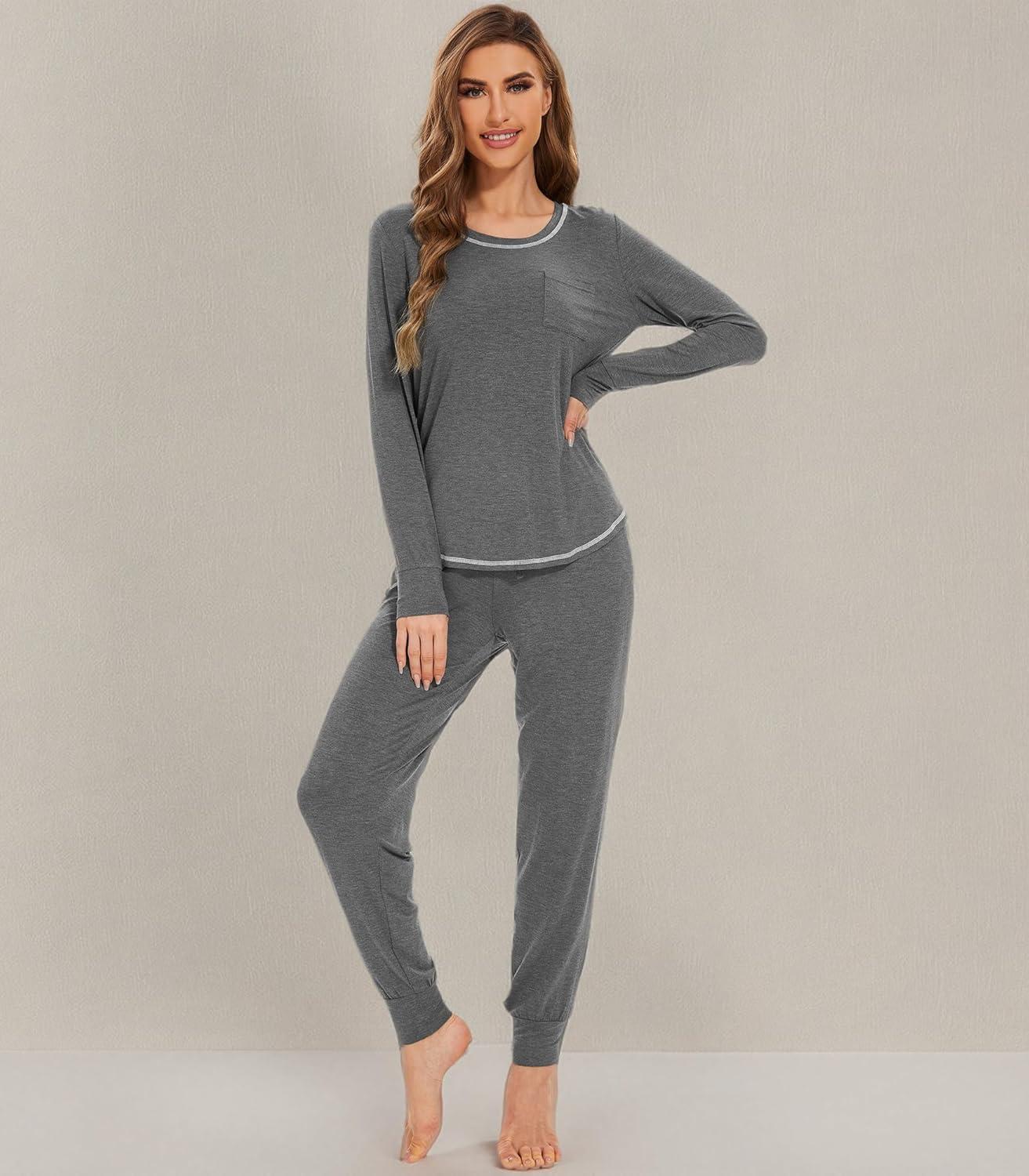 WiWi Bamboo Viscose Pajamas Set for Women Long Sleeve Sleepwear Soft Loungewear Pjs Jogger Pants Lounge Sets S-XXL(A-dark Heather Grey)