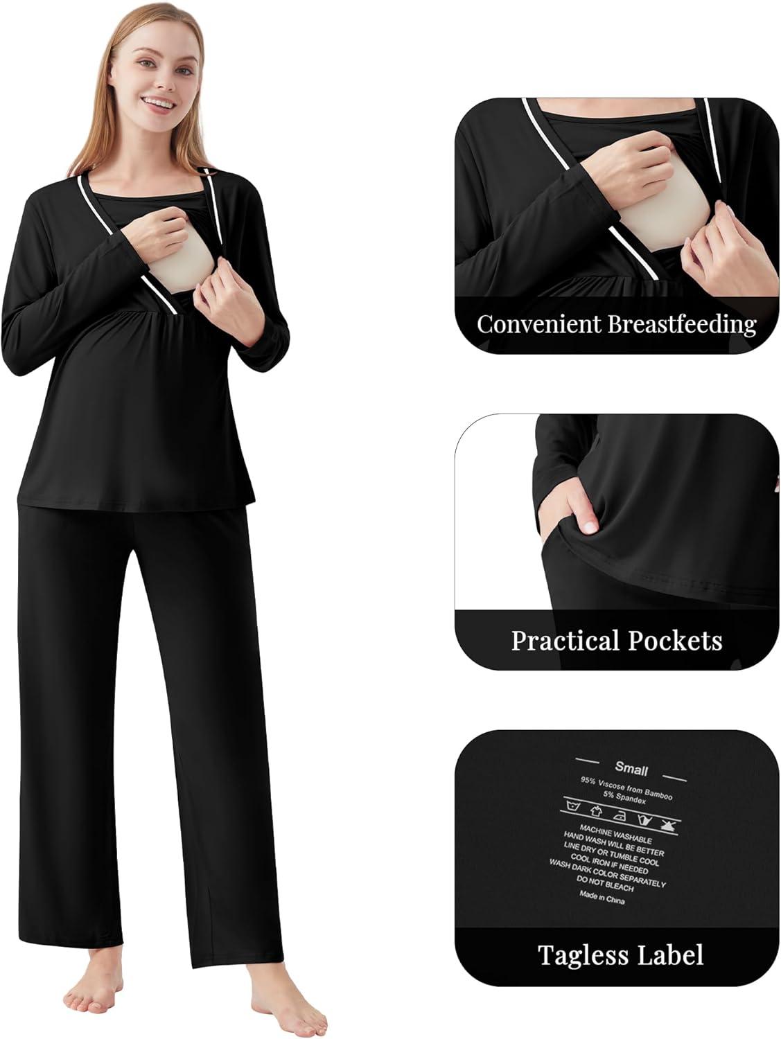 Be the first to review “WiWi Maternity Nursing Pajama Set 2 Piece Bamboo Viscose Breastfeeding Pajamas Womens Pregnancy Sleepwear S-XXL(Black)” Cancel reply