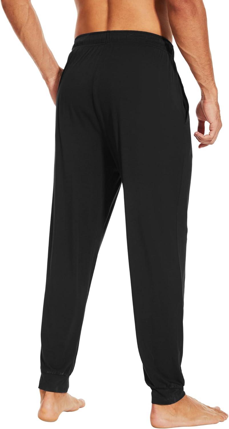 WiWi Mens Pajama Pants – Viscose from Bamboo Soft Sleep Pants Comfy Drawstring Lounge Bottom with Pockets Sweatpants S-XXL(Black)