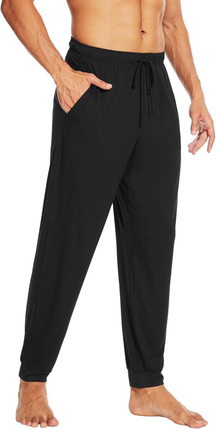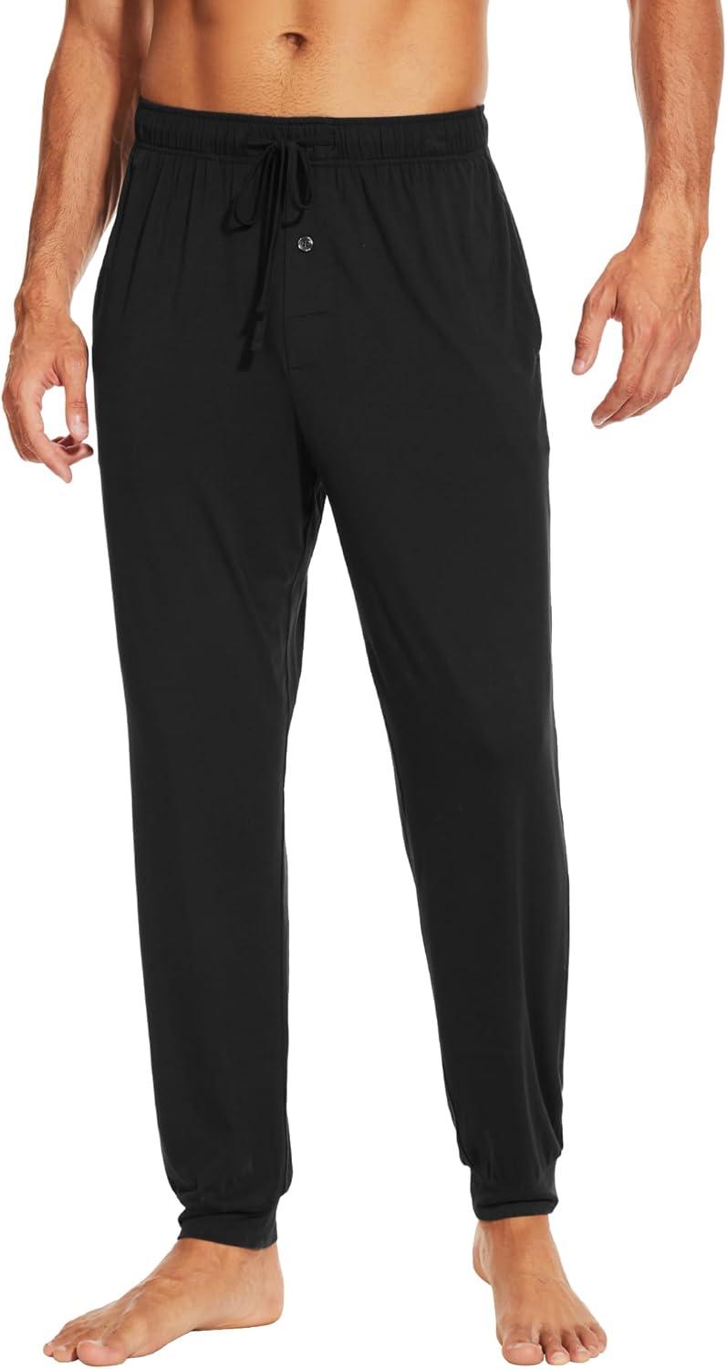 WiWi Men's Bamboo Viscose Pajama Jogger Pants 1 or 2 Pack Open Fly Lounge Bottoms Sleep Long Pj Joggers Sweatpant S-XXL(A-black)