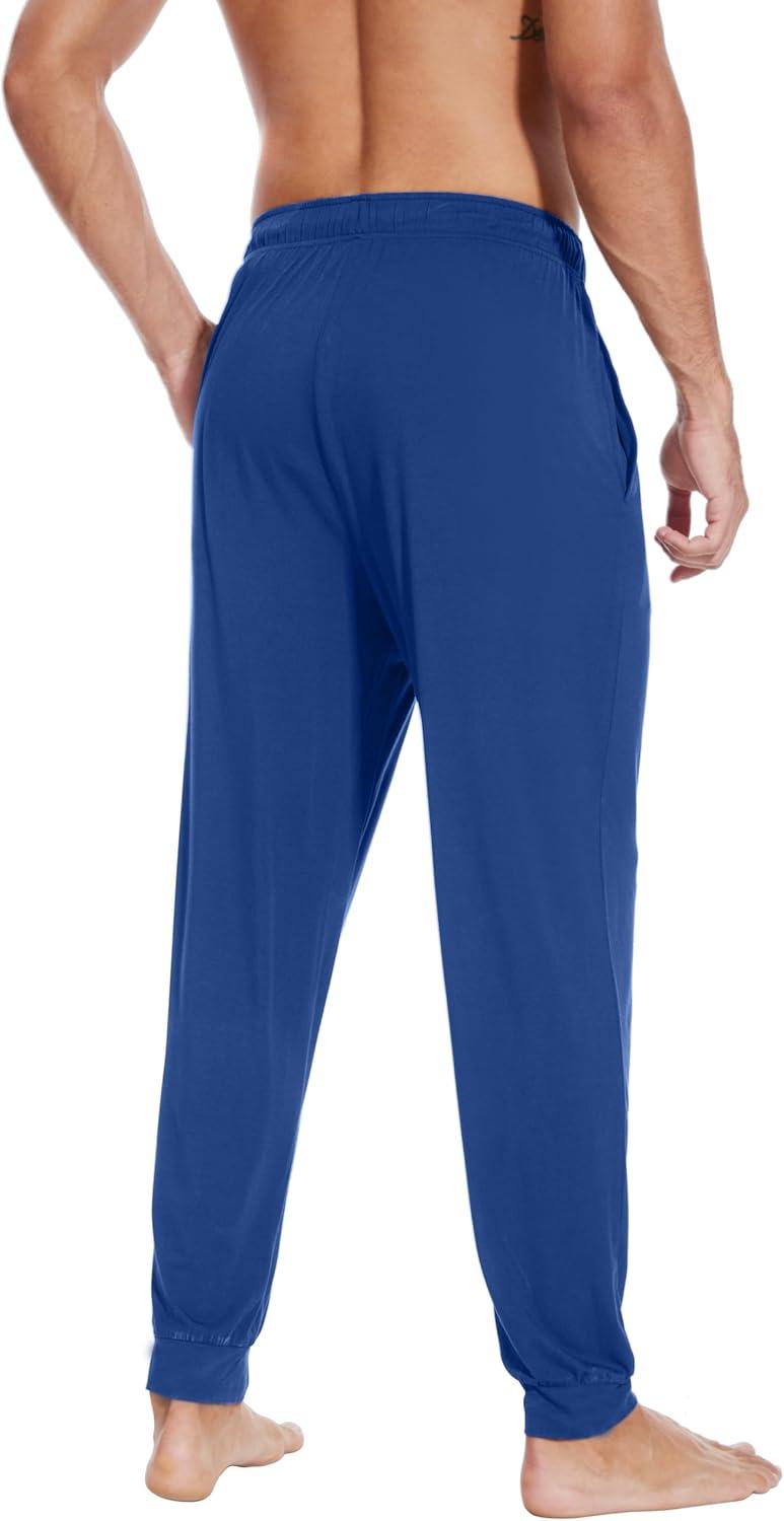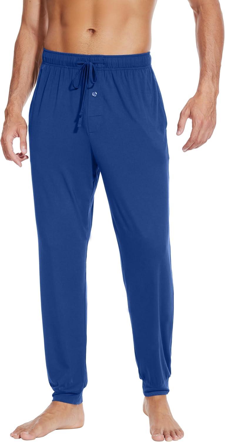 WiWi Men’s Bamboo Viscose Pajama Jogger Pants 1 or 2 Pack Open Fly Lounge Bottoms Sleep Long Pj Joggers Sweatpant S-XXL(A-blue Depth)