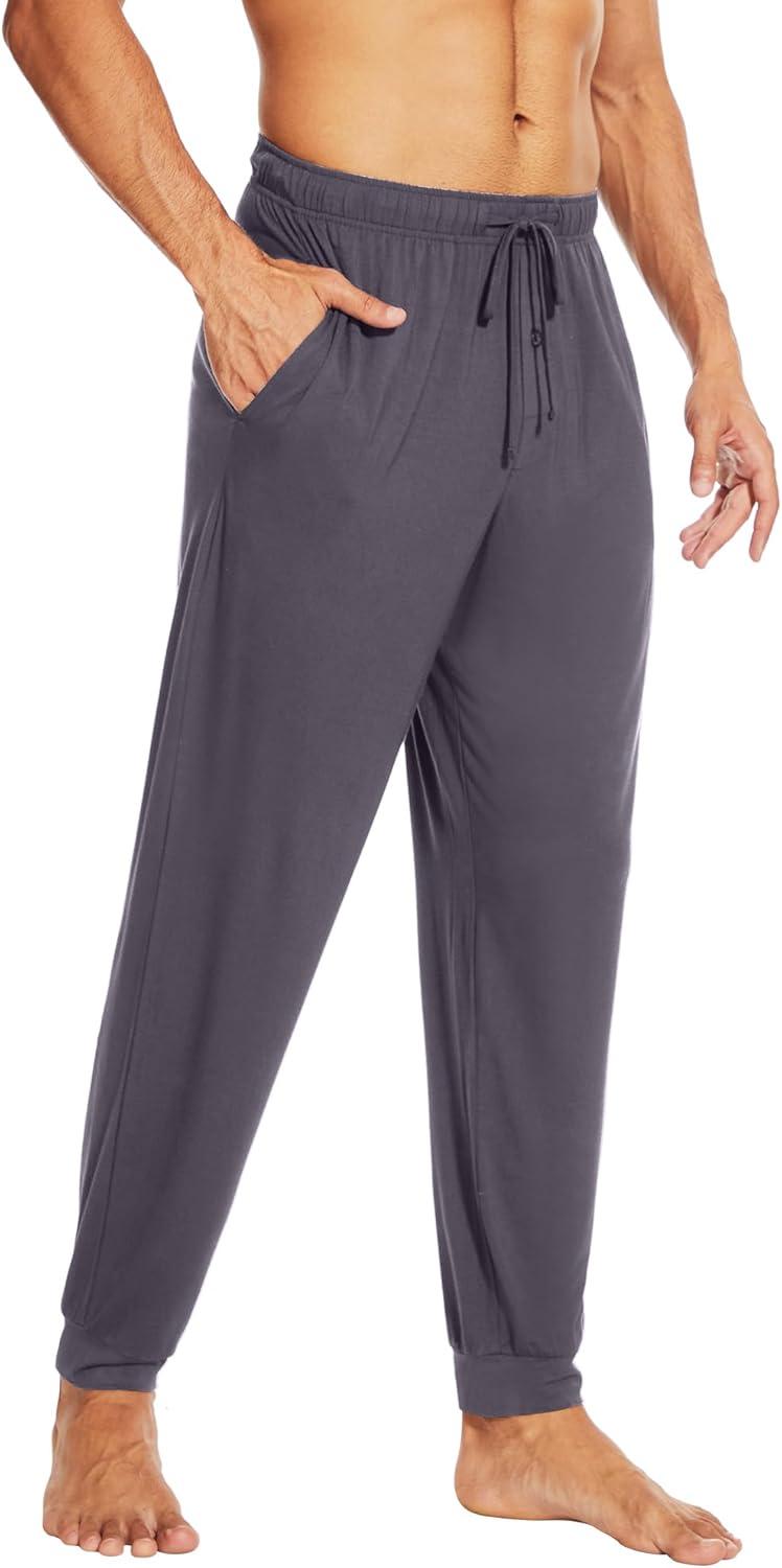 WiWi Men's Bamboo Viscose Pajama Jogger Pants 1 or 2 Pack Open Fly Lounge Bottoms Sleep Long Pj Joggers Sweatpant S-XXL(A-dark Grey)