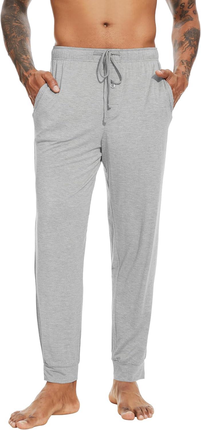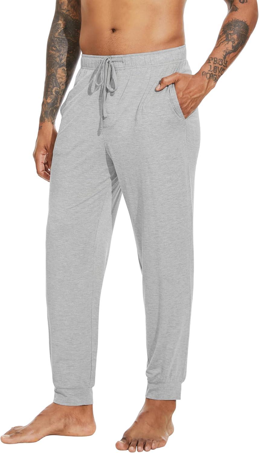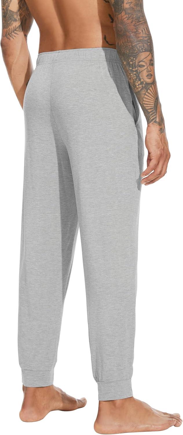 WiWi Men’s Bamboo Viscose Pajama Jogger Pants 1 or 2 Pack Open Fly Lounge Bottoms Sleep Long Pj Joggers Sweatpant S-XXL(A-light Heather Grey)
