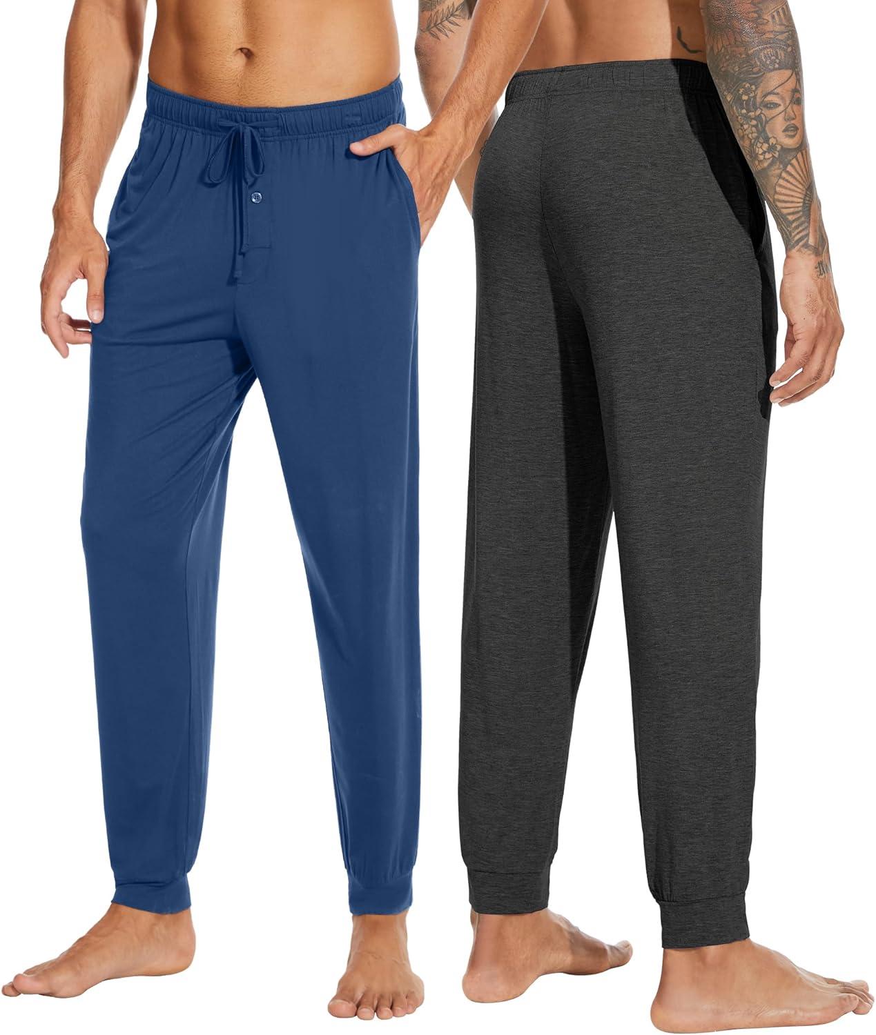 WiWi Men's Bamboo Viscose Pajama Jogger Pants Soft Lounge Bottoms Sleep Long Pj Joggers Sweatpant S-XXL(B-charcoal Heather/Dark Blue)