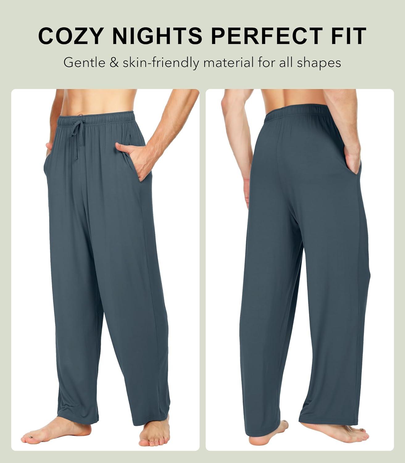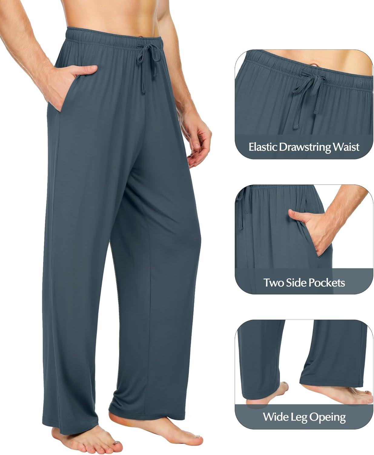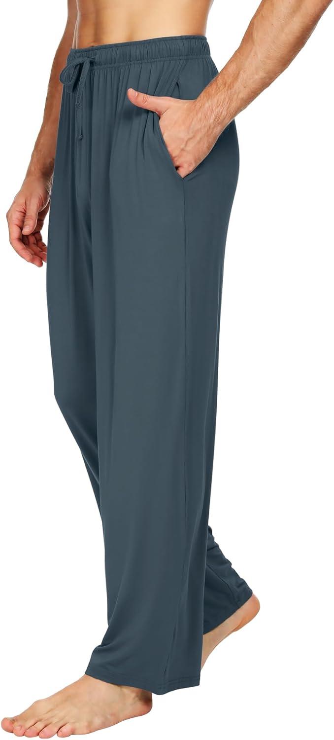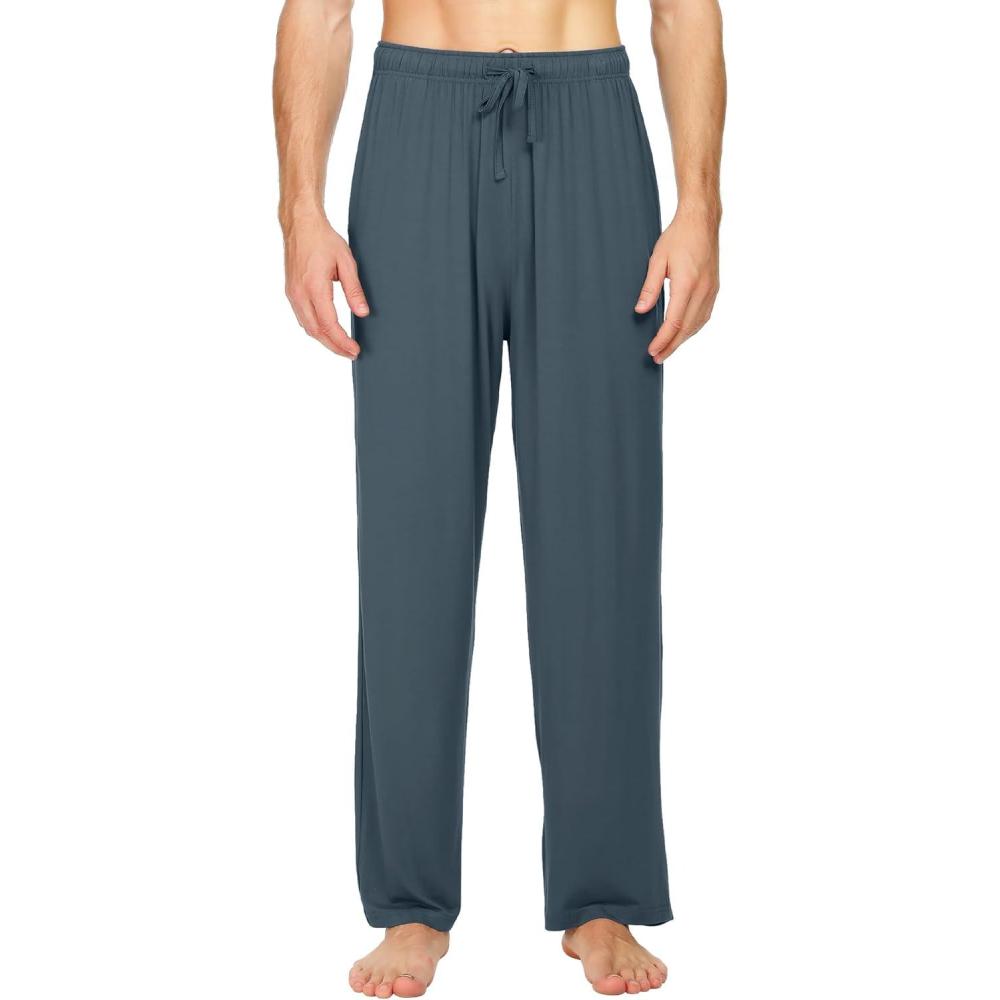 WiWi Mens Bamboo Viscose Pajama Pants Soft Lounge Bottoms Knit Big and Long Sweatpants Lightweight Sleep Pant Drawstring S-4X(A-grayish Blue)