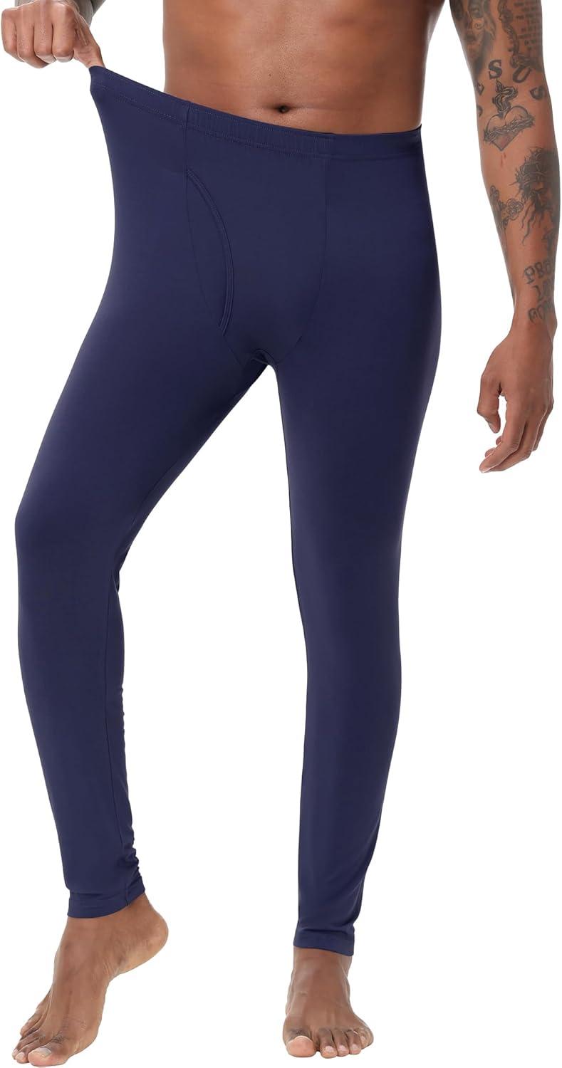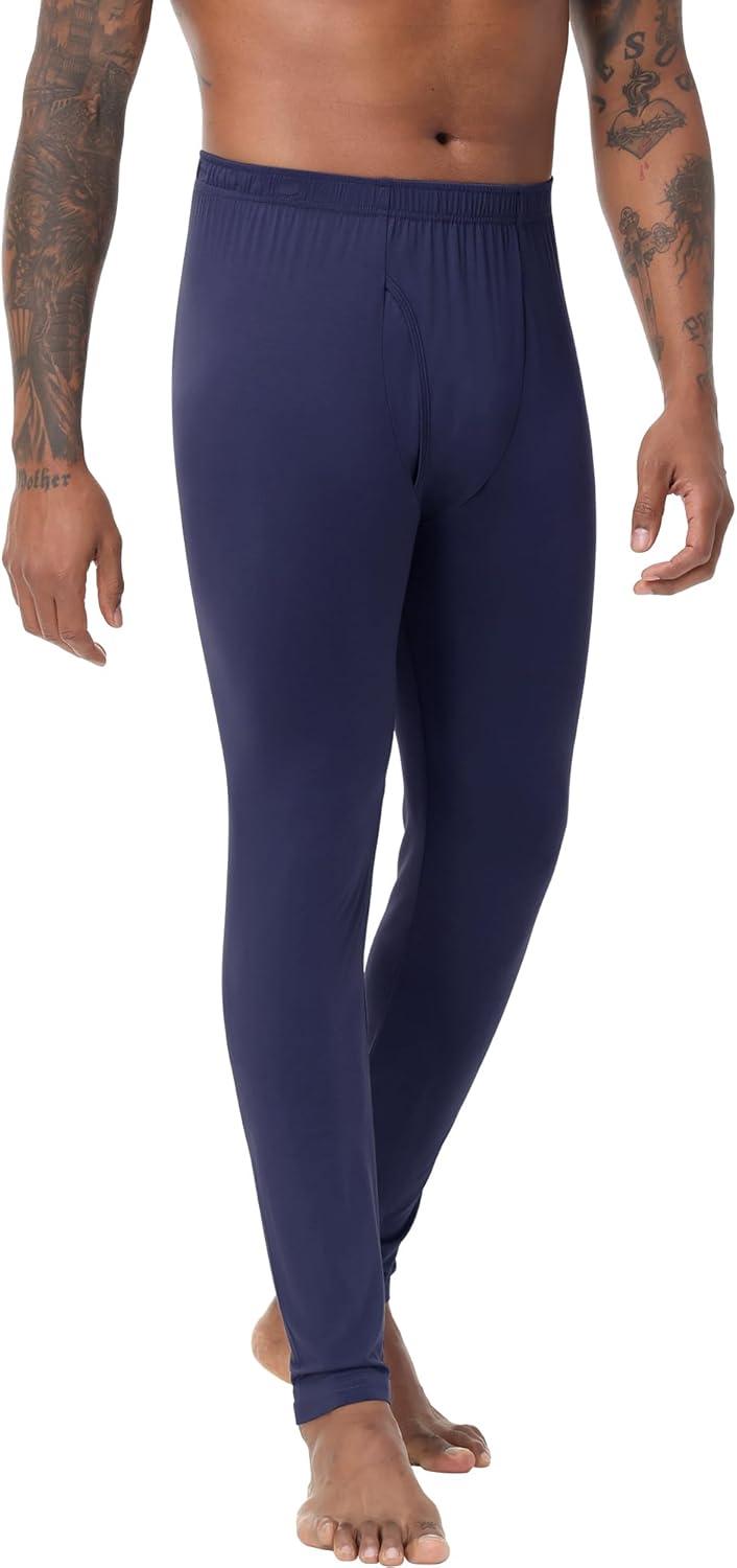 WiWi Men’s Long Johns Thermal Underwear Bottoms Base Layer Leggings Viscose from Bamboo Baselayer Pants S-XXL(Navy)