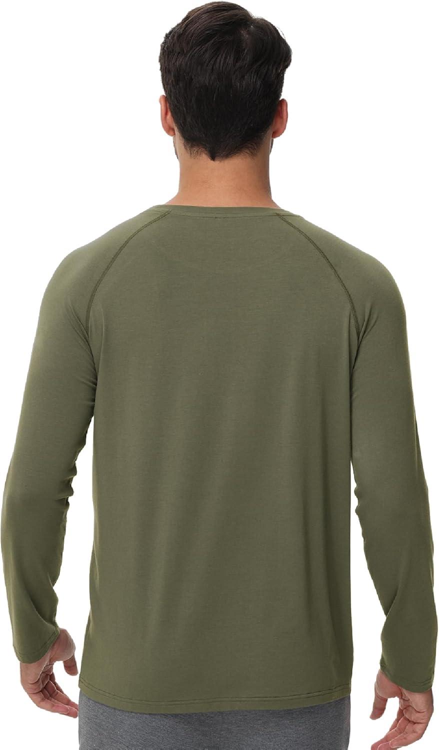 WiWi Men’s Long Sleeve Tees Moisture Wicking Shirts Viscose from Bamboo Lightweight Fishing Crew Neck T-Shirt S-XXL(A-green)