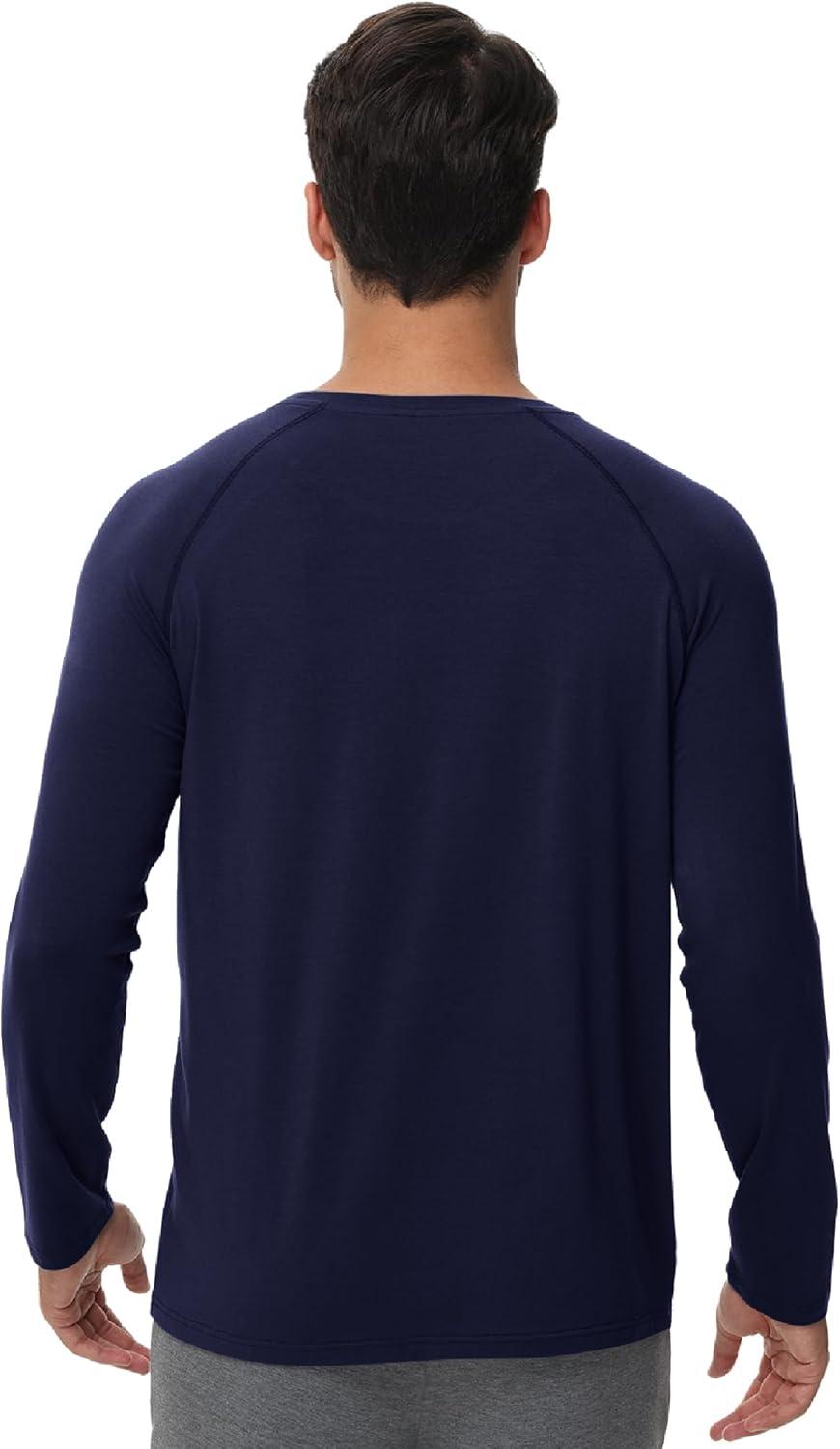 WiWi Men’s Long Sleeve Tees Moisture Wicking Shirts Viscose from Bamboo Lightweight Fishing Crew Neck T-Shirt S-XXL(A-navy)