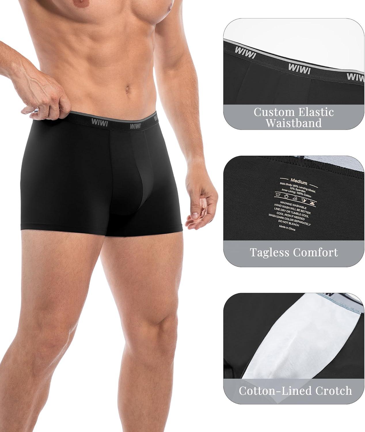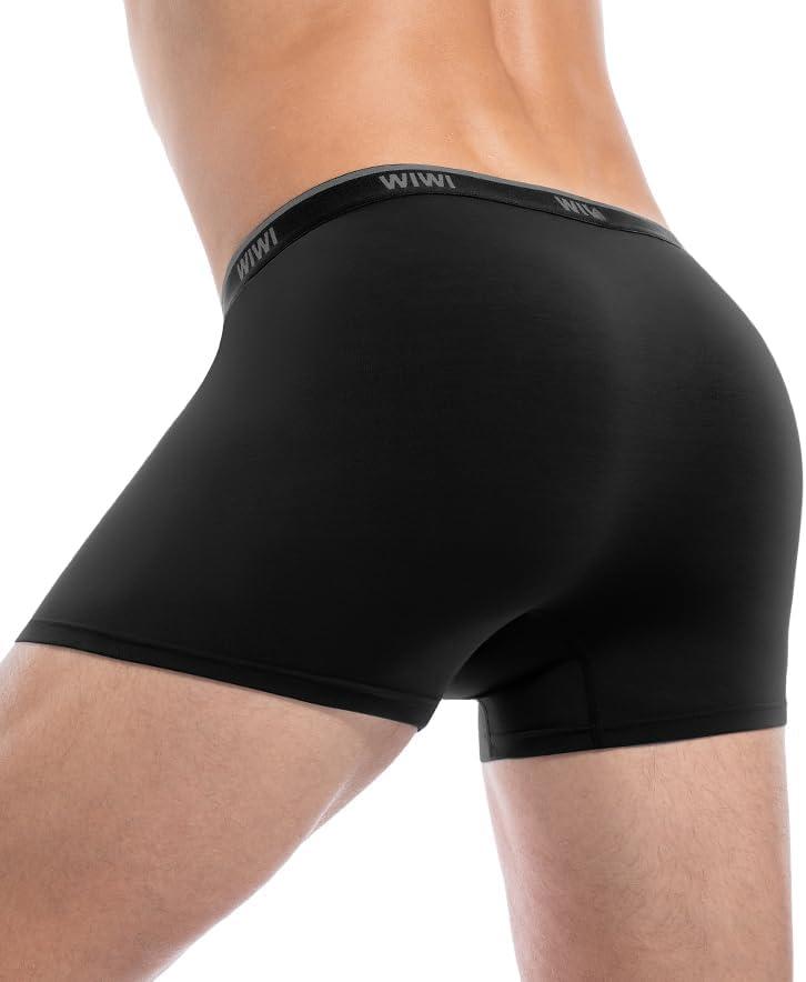 WiWi Men's Modal Underwear 4Pack Boxer Briefs Moisture-Wicking Tagless Shorts Soft Stretchy Brief S-XXL(Black-4 Pack)