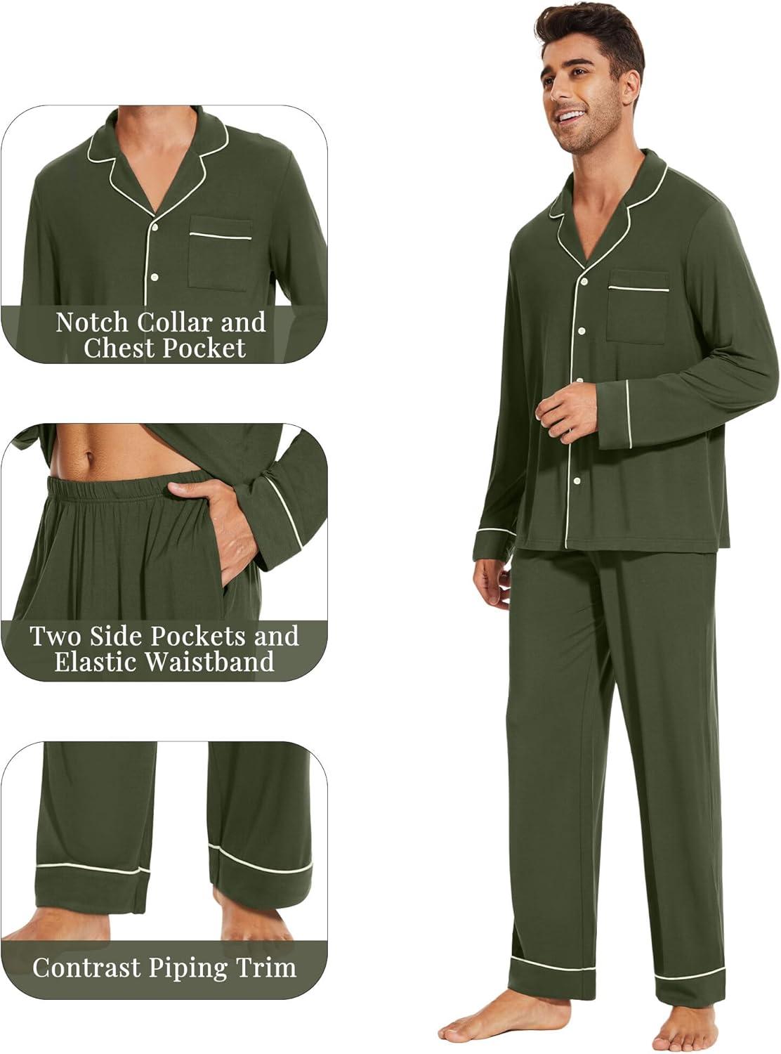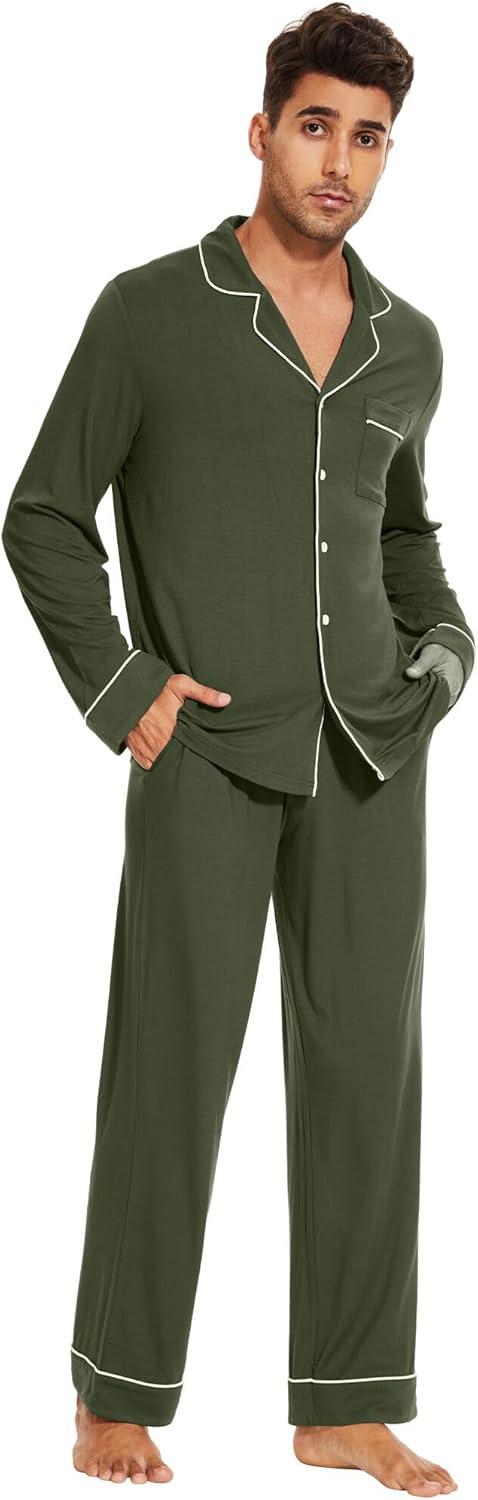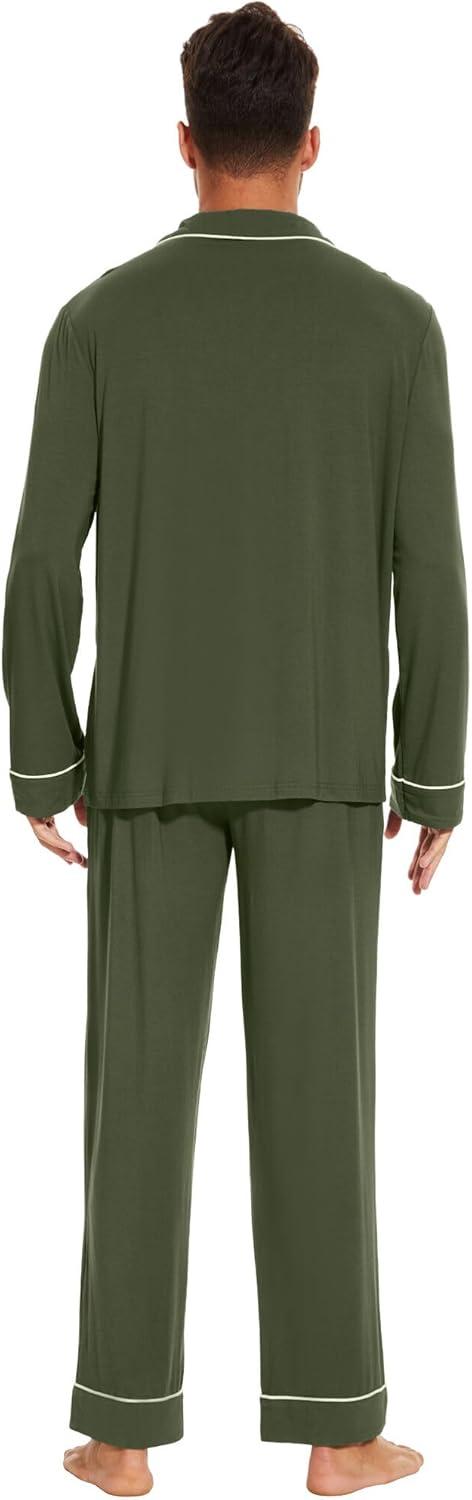 WiWi Men's Pajama Set Soft Sleepwear Button Down Pajamas Sets Classic Notch Collar Loungewear Viscose from Bamboo Pjs S-XXL(A-dark Fence Green)