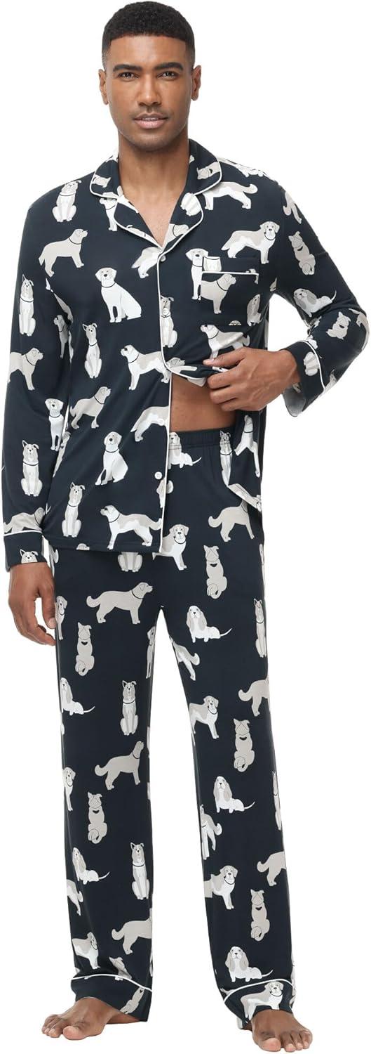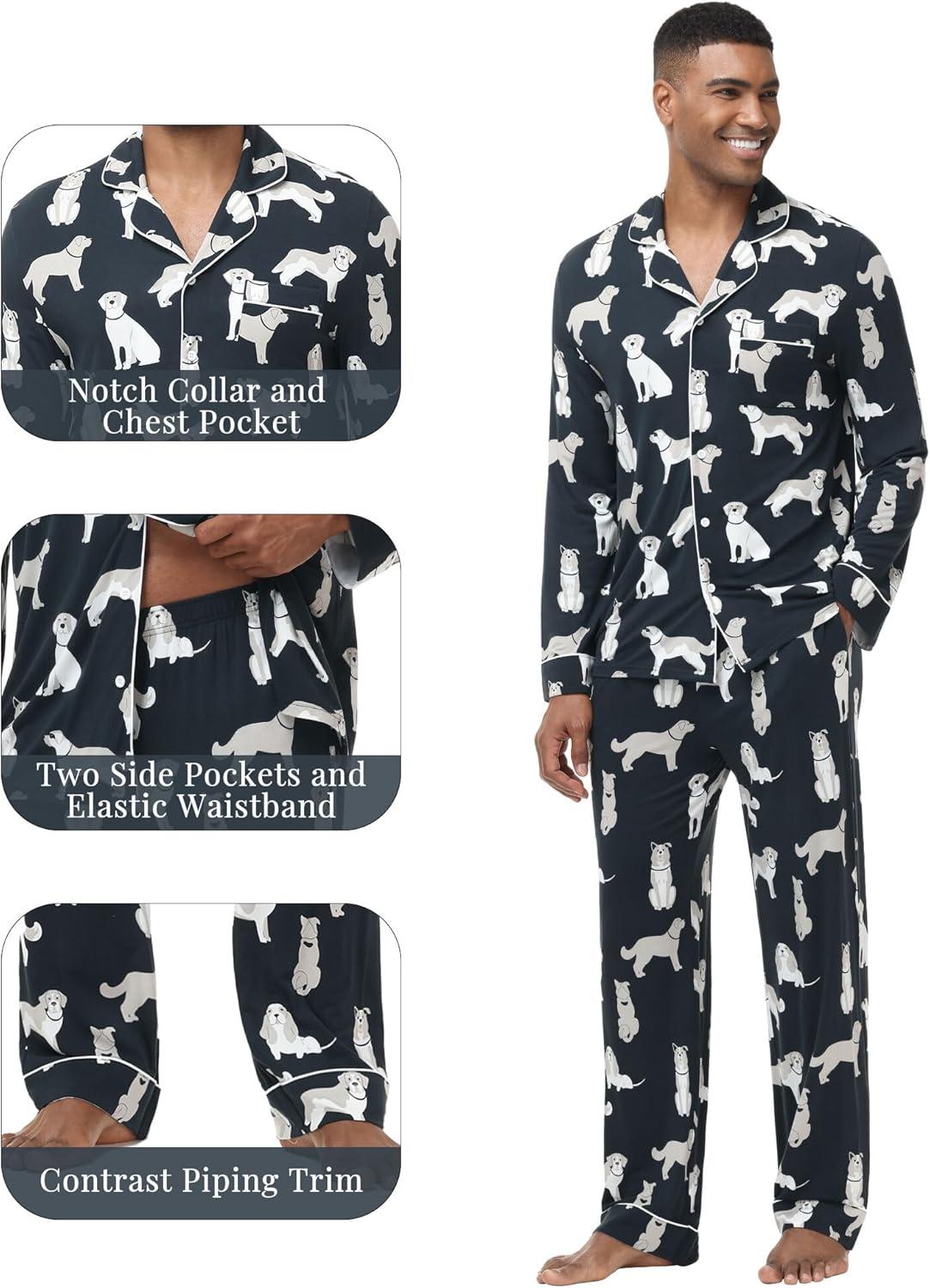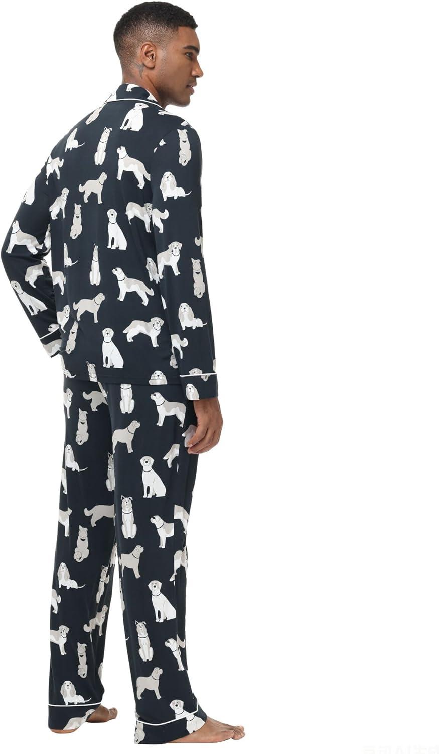 WiWi Men's Pajama Set Soft Sleepwear Button Down Pajamas Sets Classic Notch Collar Loungewear Viscose from Bamboo Pjs S-XXL(A-dog)