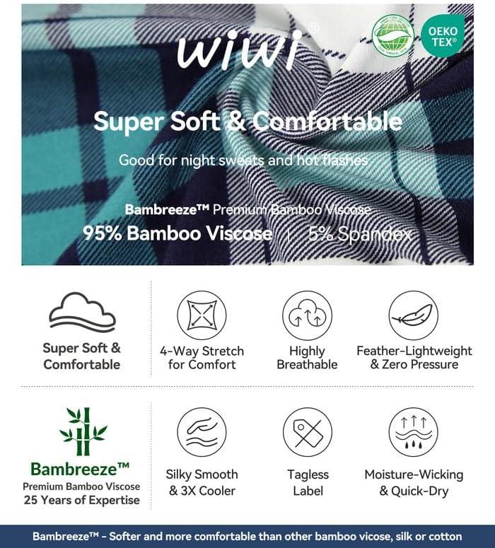 WiWi Men’s Pajama Set Soft Sleepwear Button Down Pajamas Sets Classic Notch Collar Loungewear Viscose from Bamboo Pjs S-XXL(A-navy/Green Plaid)