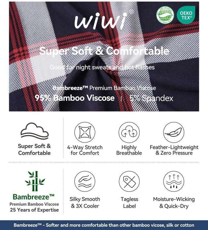 WiWi Men’s Pajama Set Soft Sleepwear Button Down Pajamas Sets Classic Notch Collar Loungewear Viscose from Bamboo Pjs S-XXL(A-navy/Red Stripe Plaid)