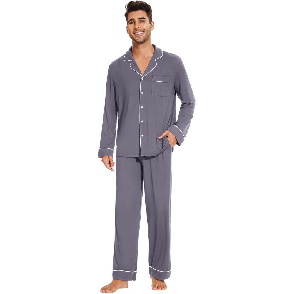 WiWi Men's Pajama Set Soft Sleepwear Button Down Pajamas Sets Classic Notch Collar Loungewear Viscose from Bamboo Pjs S-XXL(A-purplish Grey)