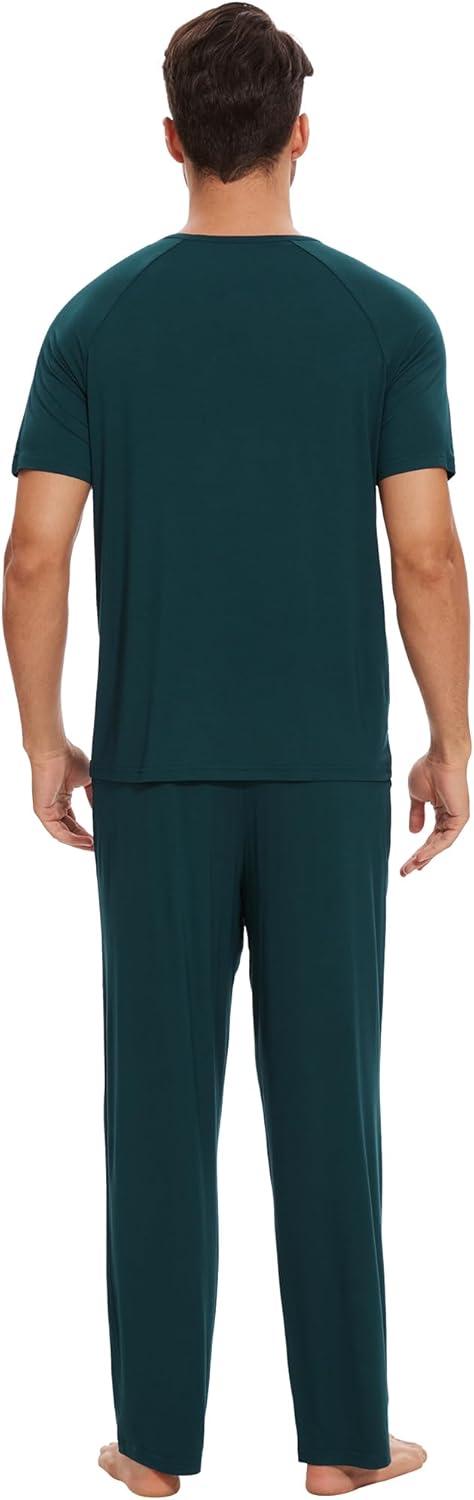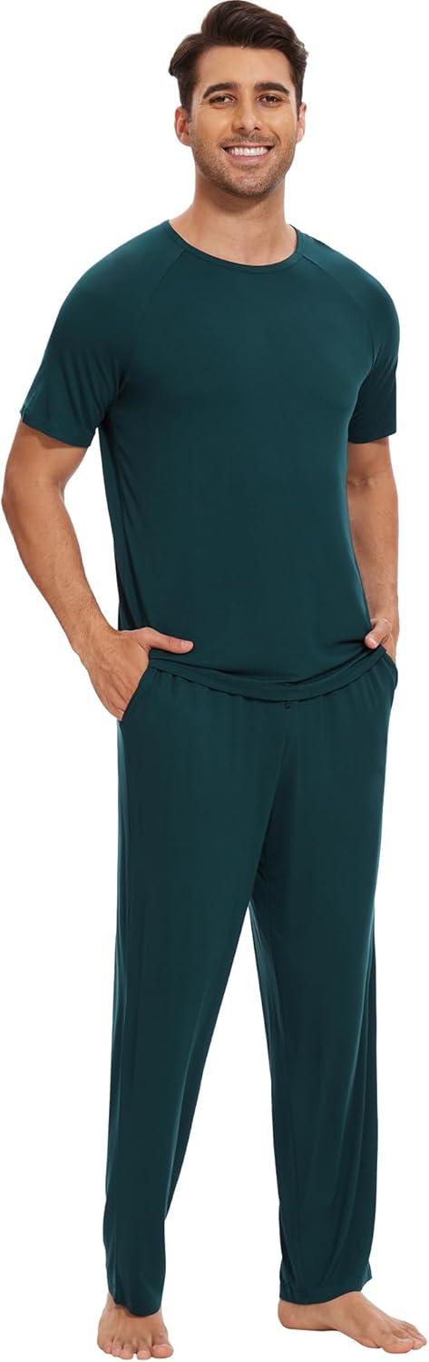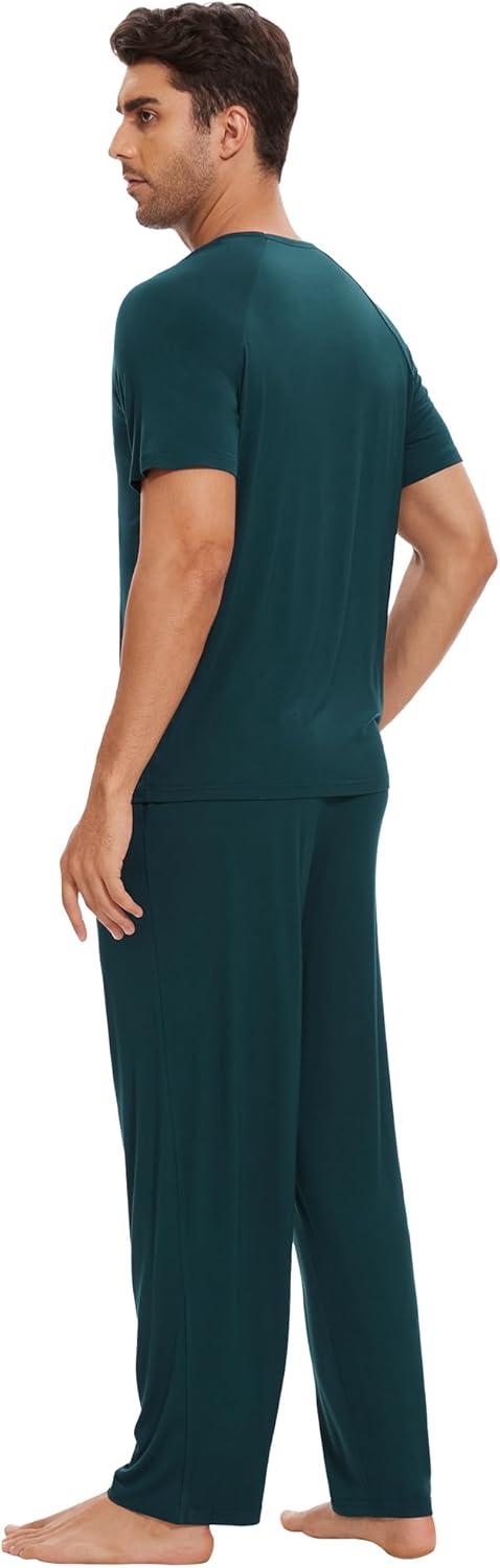 WiWi Men's Pajamas Set Viscose from Bamboo Sleepwear Casual Soft Sleep Sets with Pockets Short Sleeve Loungewear S-XXL(A-deep Teal)