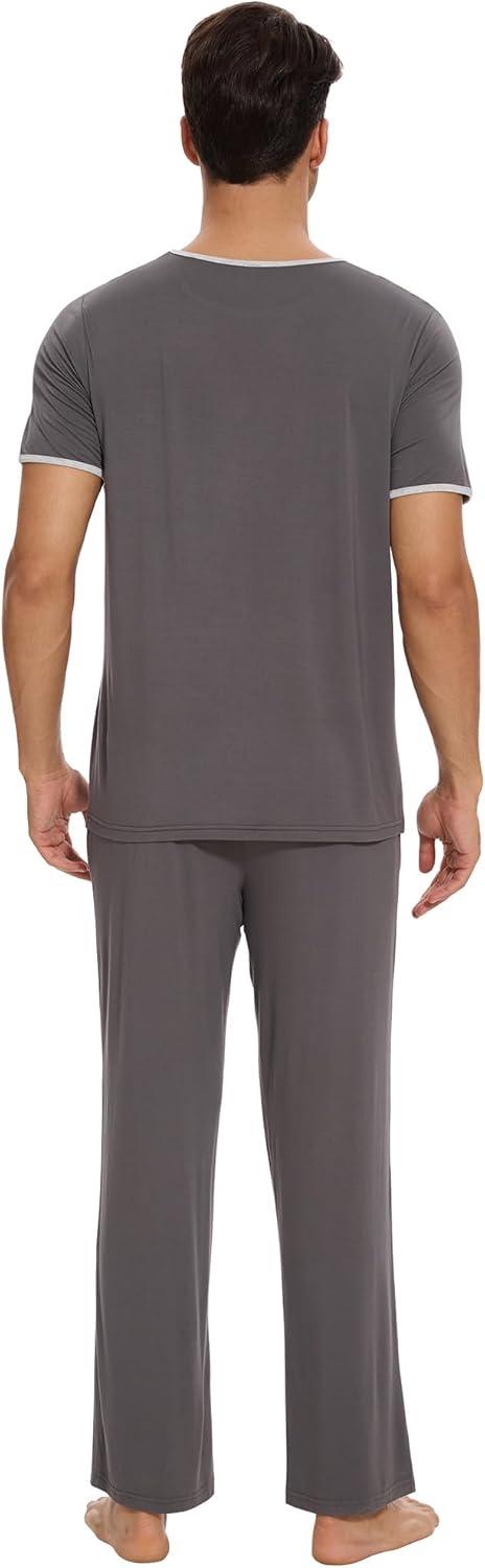 WiWi Men's Pajamas Set Viscose from Bamboo Sleepwear Casual Soft Sleep Sets with Pockets Short Sleeve Loungewear S-XXL(B-dark Grey)