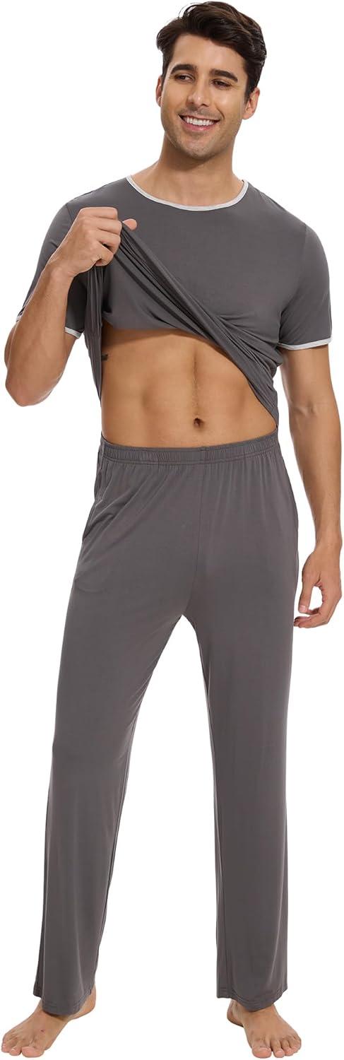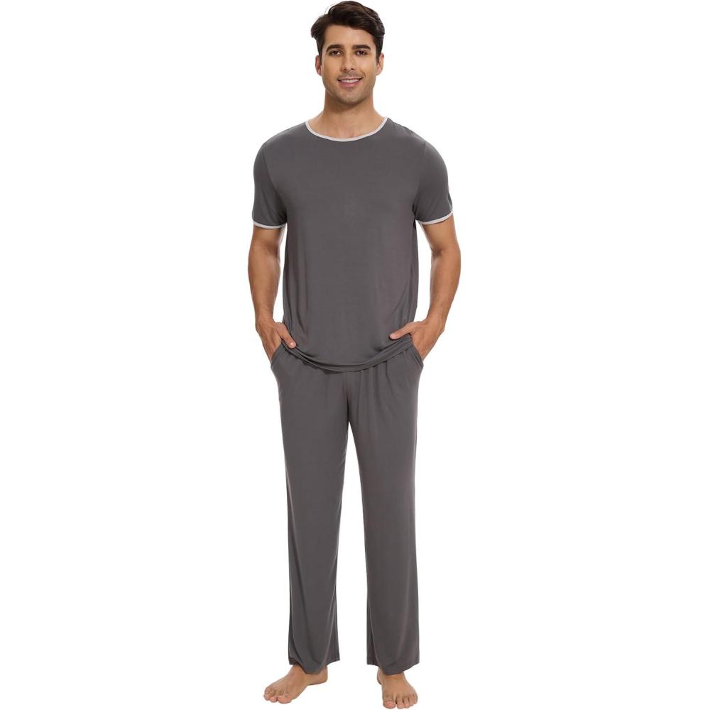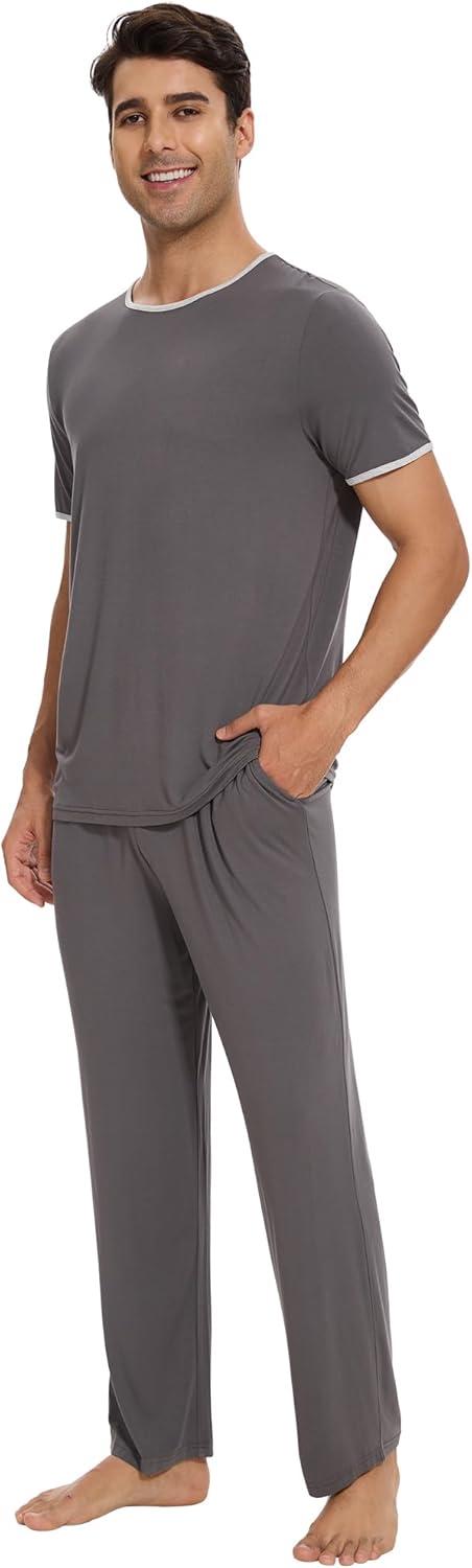 WiWi Men’s Pajamas Set Viscose from Bamboo Sleepwear Casual Soft Sleep Sets with Pockets Short Sleeve Loungewear S-XXL(B-charcoal Heather)