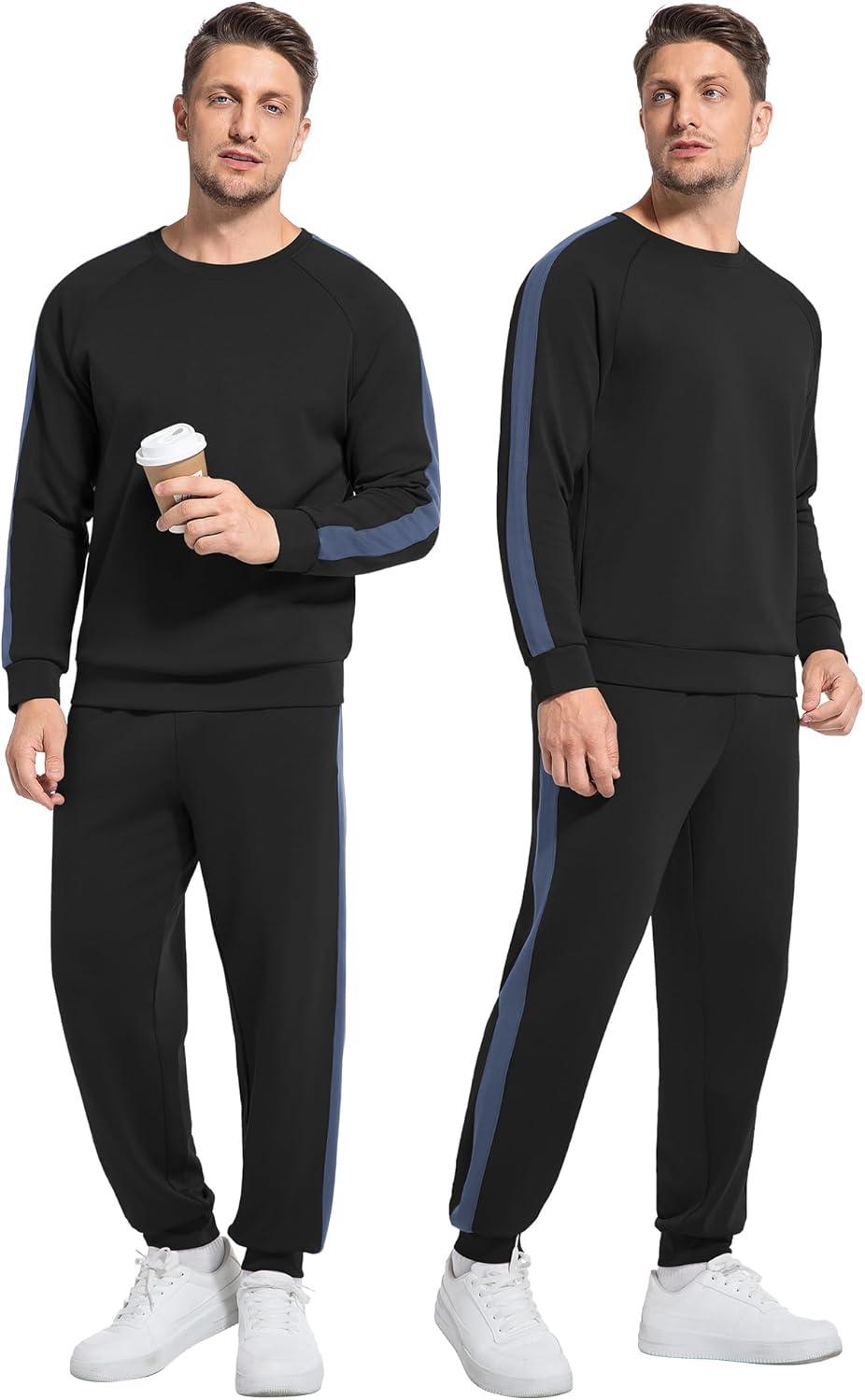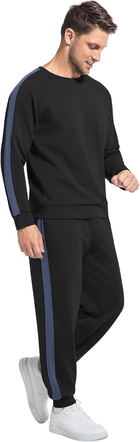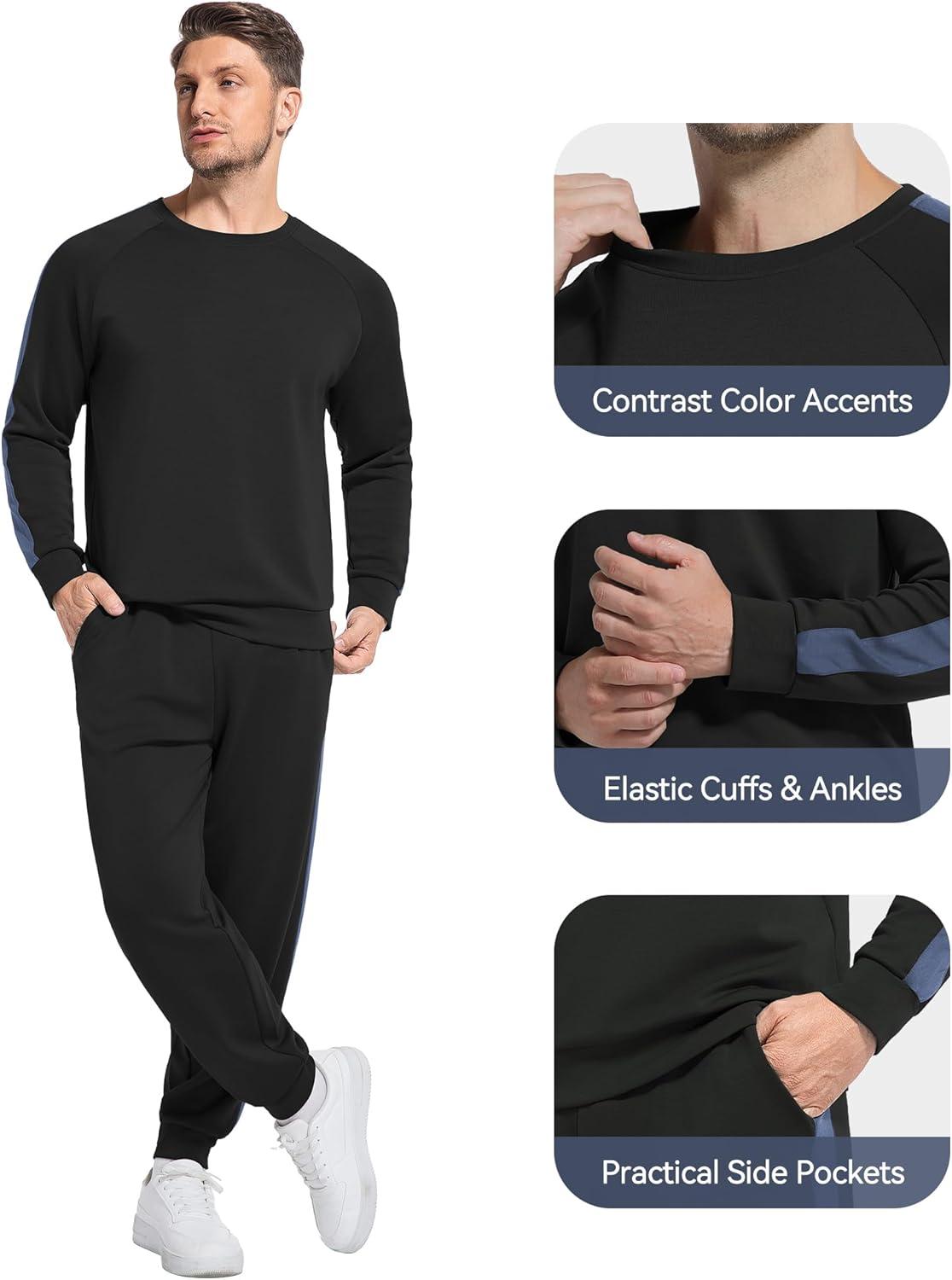 Crafted from a premium blend of 40.8% Modal, 40.8% Cotton, 13.4% Polyester, and 5% Spandex, this men’s tracksuit set offers a soft, breathable, and flexible feel for all-day comfort. Designed with a classic crew neck, raglan sleeves, and contrast color details, it delivers a clean, modern look with sporty charm. Elastic cuffs and waistband provide a secure yet relaxed fit, while side pockets add convenient storage. Perfect for lounging, workouts, travel, or casual outings, this set combines comfort, style, and versatility. Machine washable for easy care.