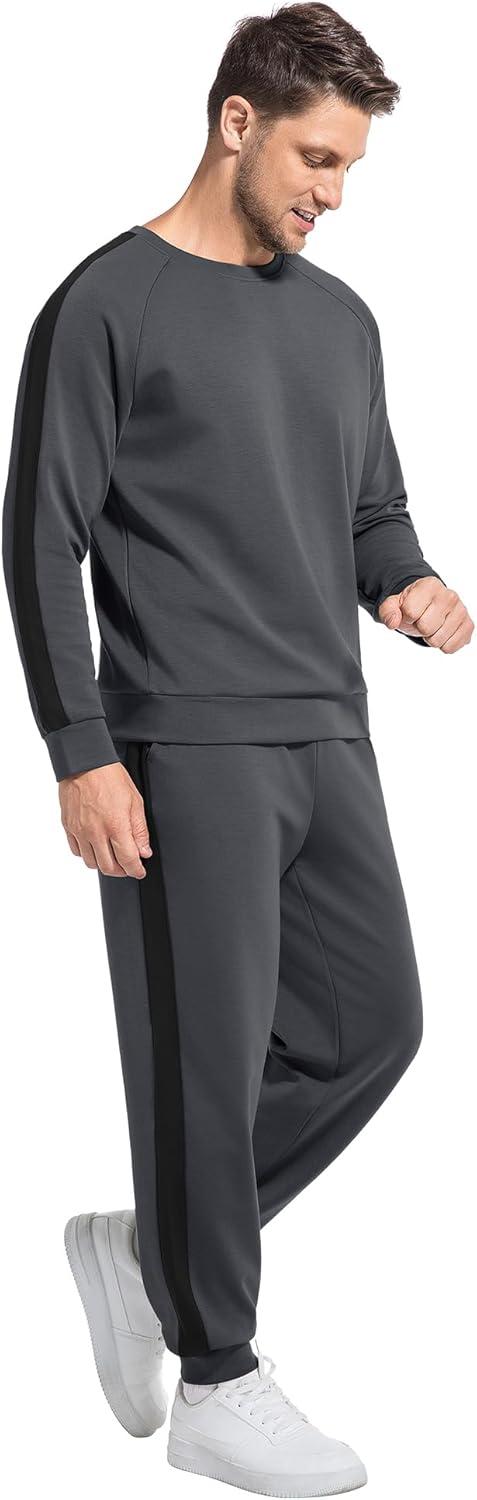 WiWi Men's Tracksuit Set Soft Breathable 2 Piece Jogger Outfit Modal Cotton Pullover Jogging Sweatsuits S-XXL(Deep Grey)