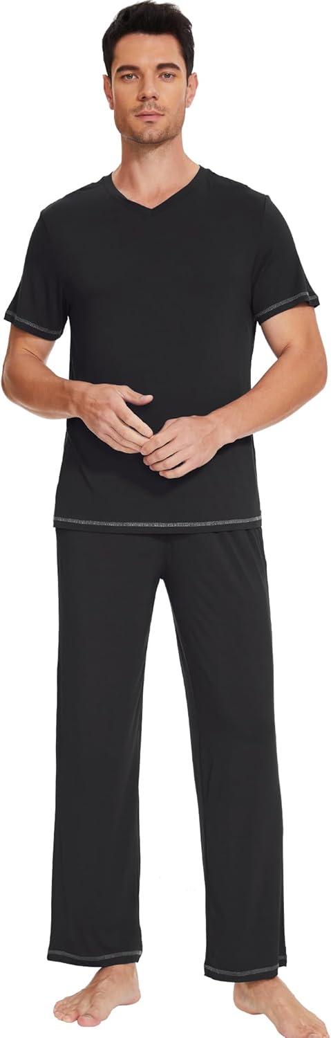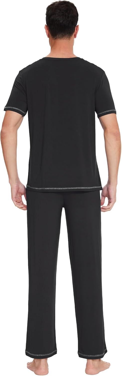WiWi Mens Viscose from Bamboo Pajama Set Short Sleeve Pajamas Sets with Pants Sleepwear Soft Lightweight Lounge Pj S-XXL(Black)