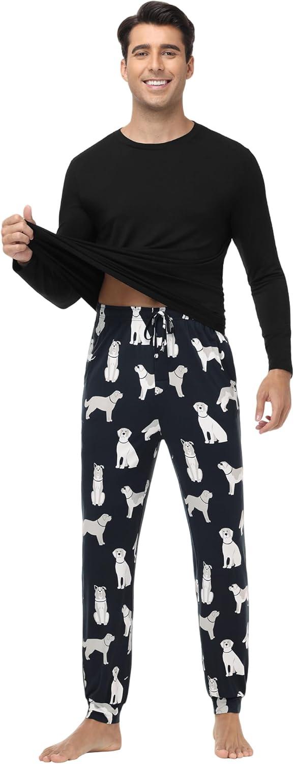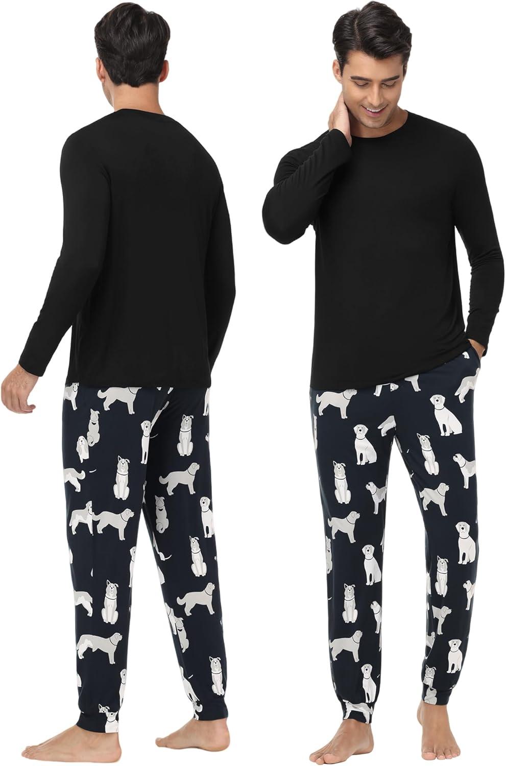 WiWi Men’s Viscose from Bamboo Pajama Sets Long Sleeve Top and Pants Sleepwear Pjs with Pockets Drawstring S-XXL(A-black/Dog)