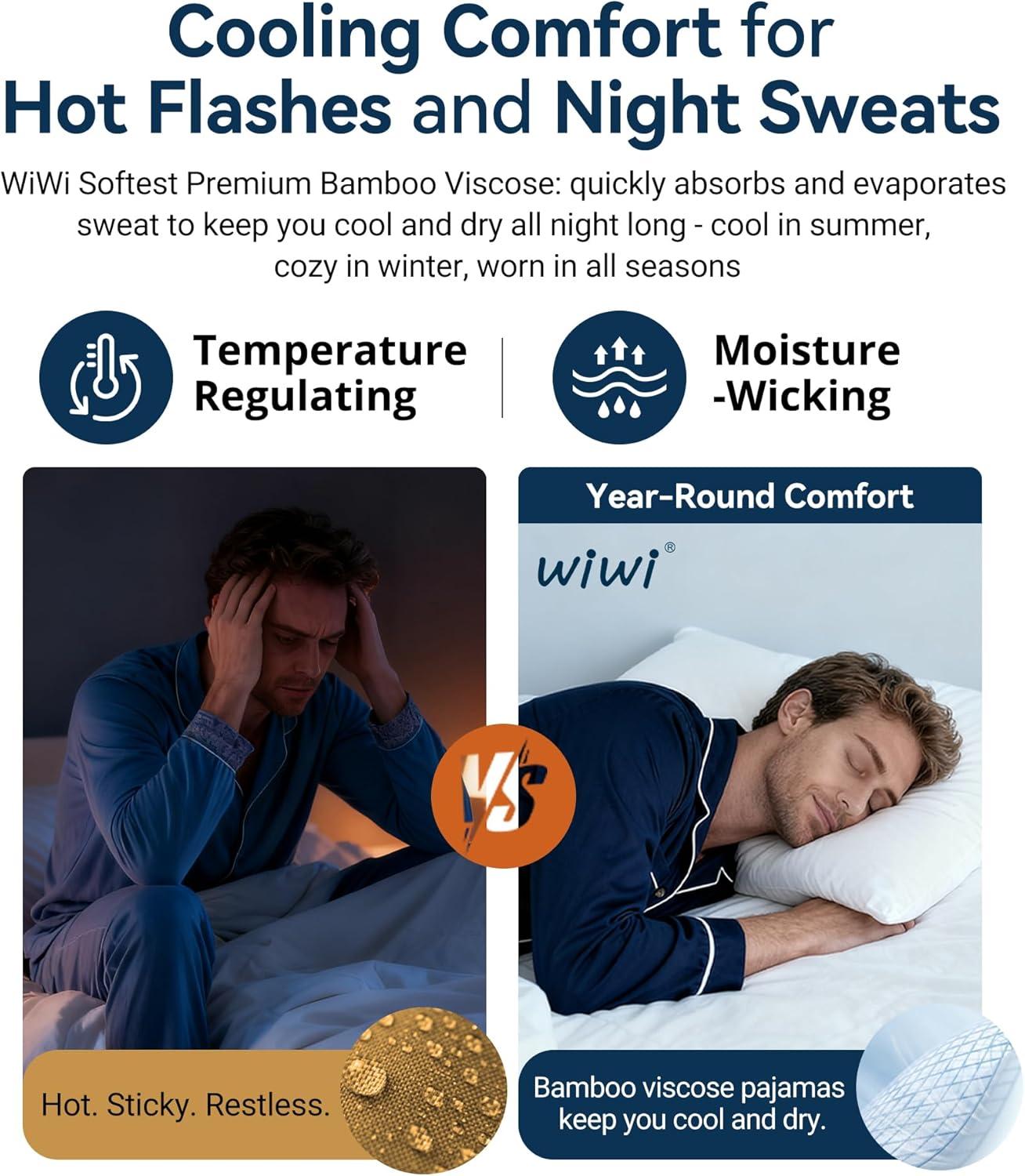 WiWi Men’s Viscose from Bamboo Pajama Sets Long Sleeve Top and Pants Sleepwear Pjs with Pockets Drawstring S-XXL(A-brownish Red)