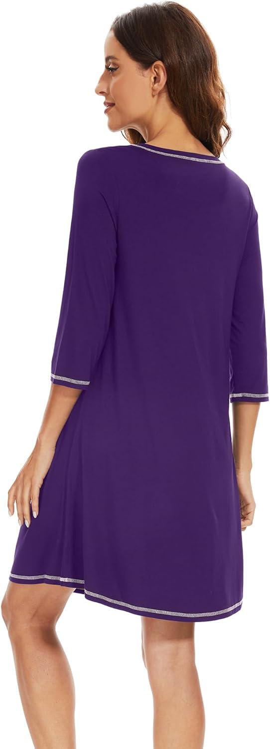 WiWi Nightgowns for Women 3/4 Sleeve Sleep Shirts Soft Pajamas Gowns Viscose from Bamboo Nightwear S-XXL(Dark Purple)