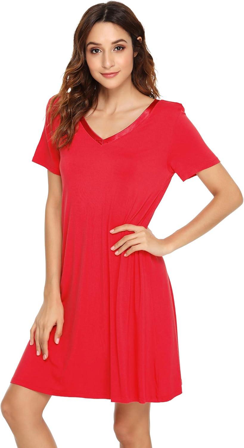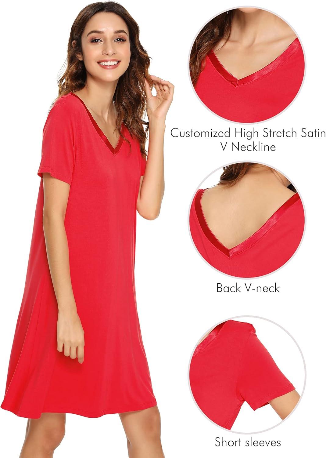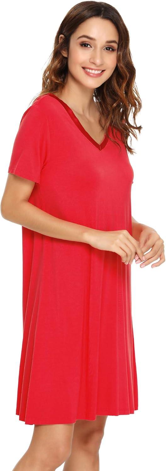 WiWi Nightgowns for Women Short Sleeve Sleepwear Soft Bamboo Viscose Pajamas Sleep Shirt Plus Size Loungewear S-4X(A-bright Red)
