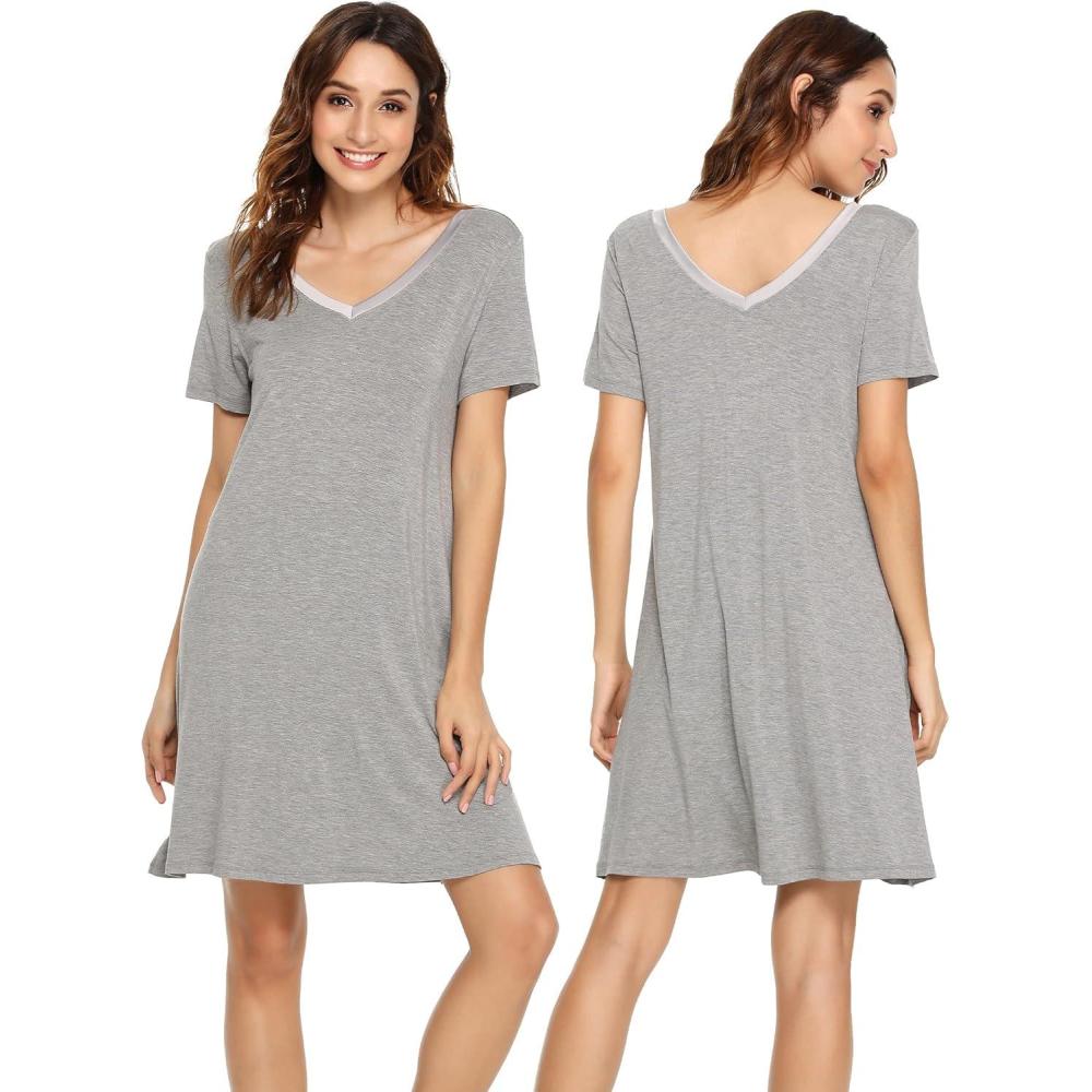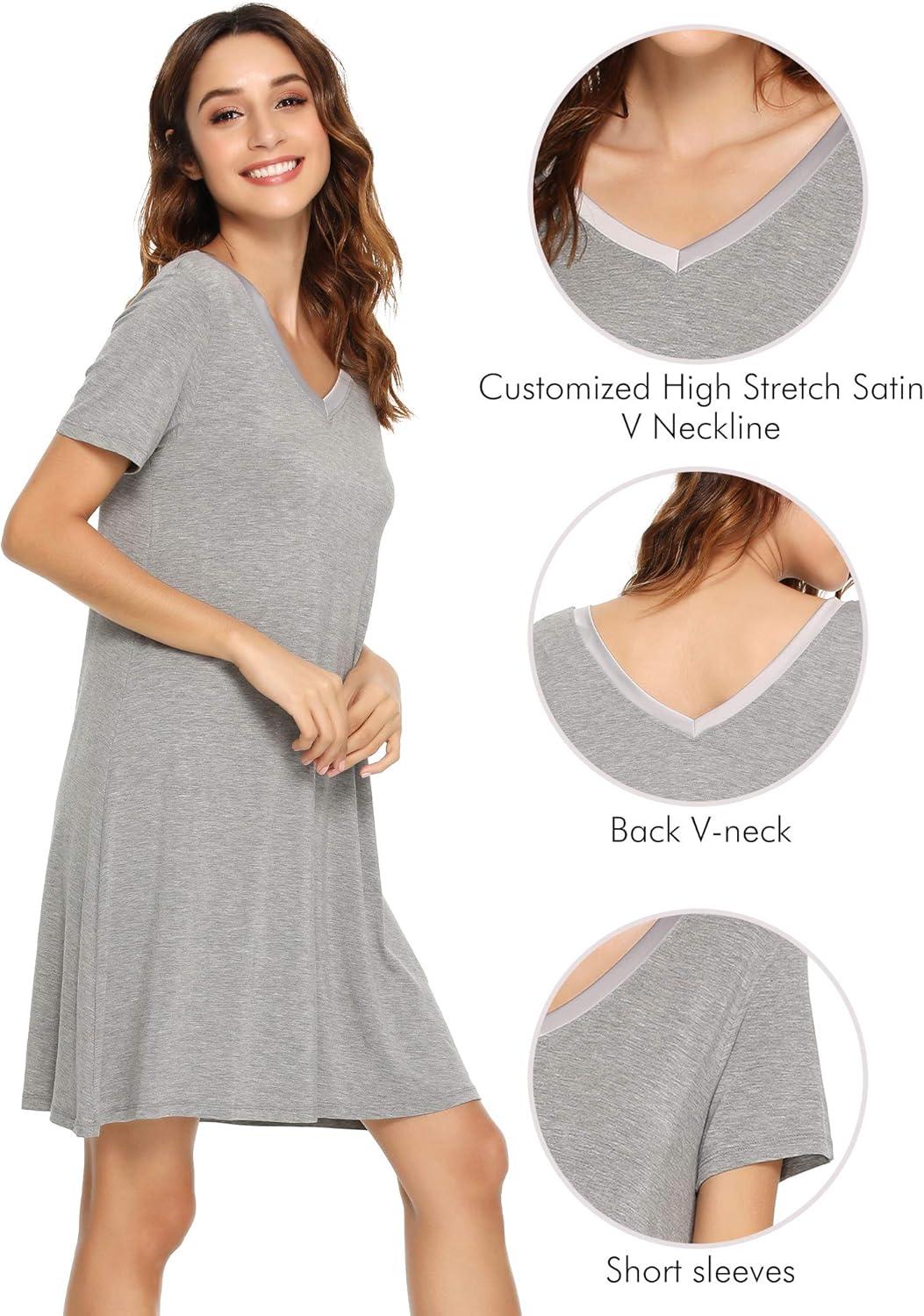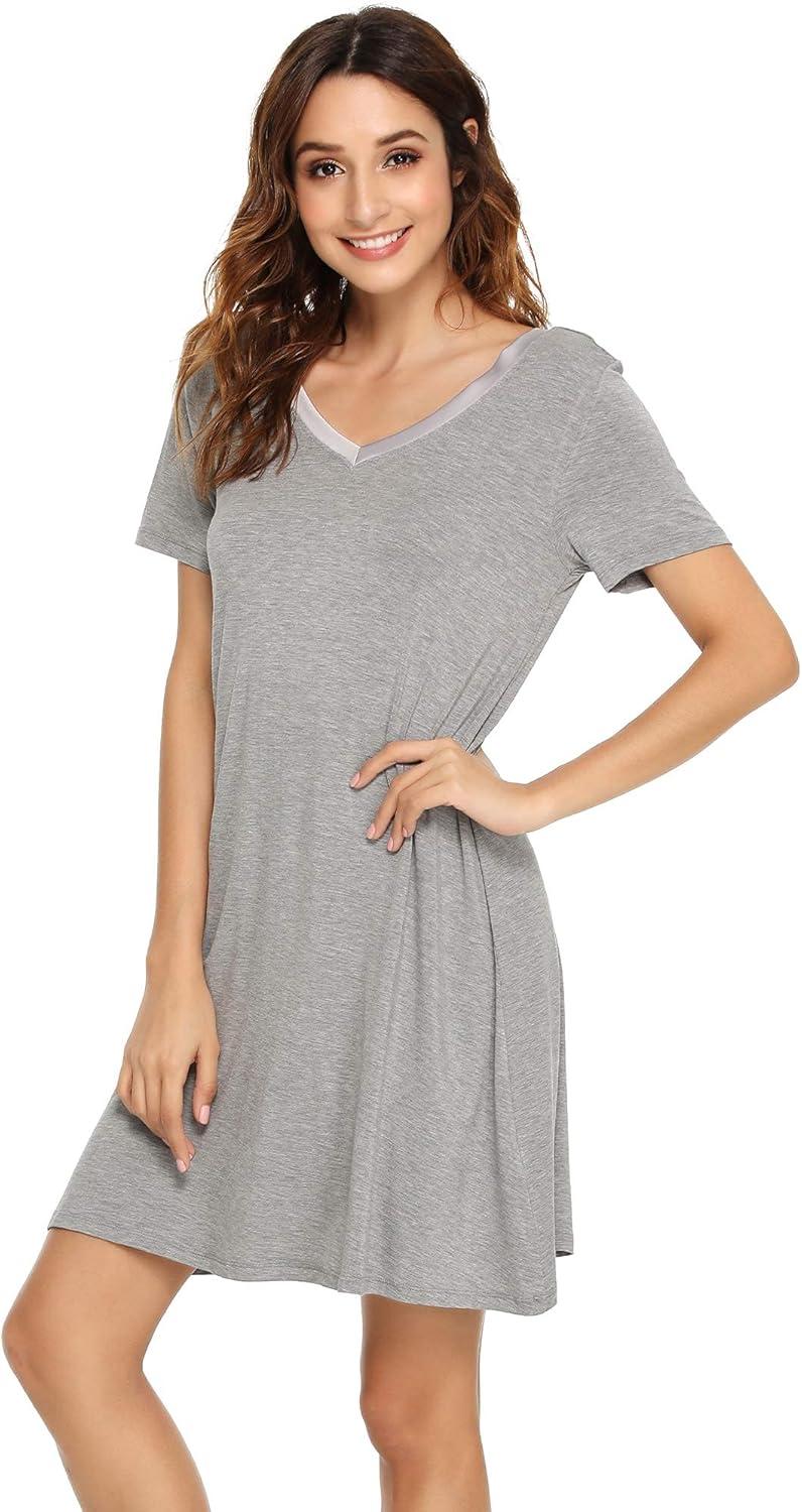 WiWi Nightgowns for Women Short Sleeve Sleepwear Soft Bamboo Viscose Pajamas Sleep Shirt Plus Size Loungewear S-4X(A-dark Grey)