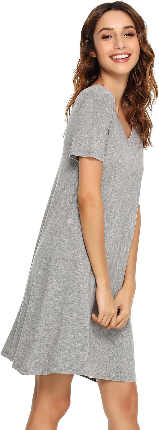 WiWi Nightgowns for Women Short Sleeve Sleepwear Soft Bamboo Viscose Pajamas Sleep Shirt Plus Size Loungewear S-4X(A-heather Grey)