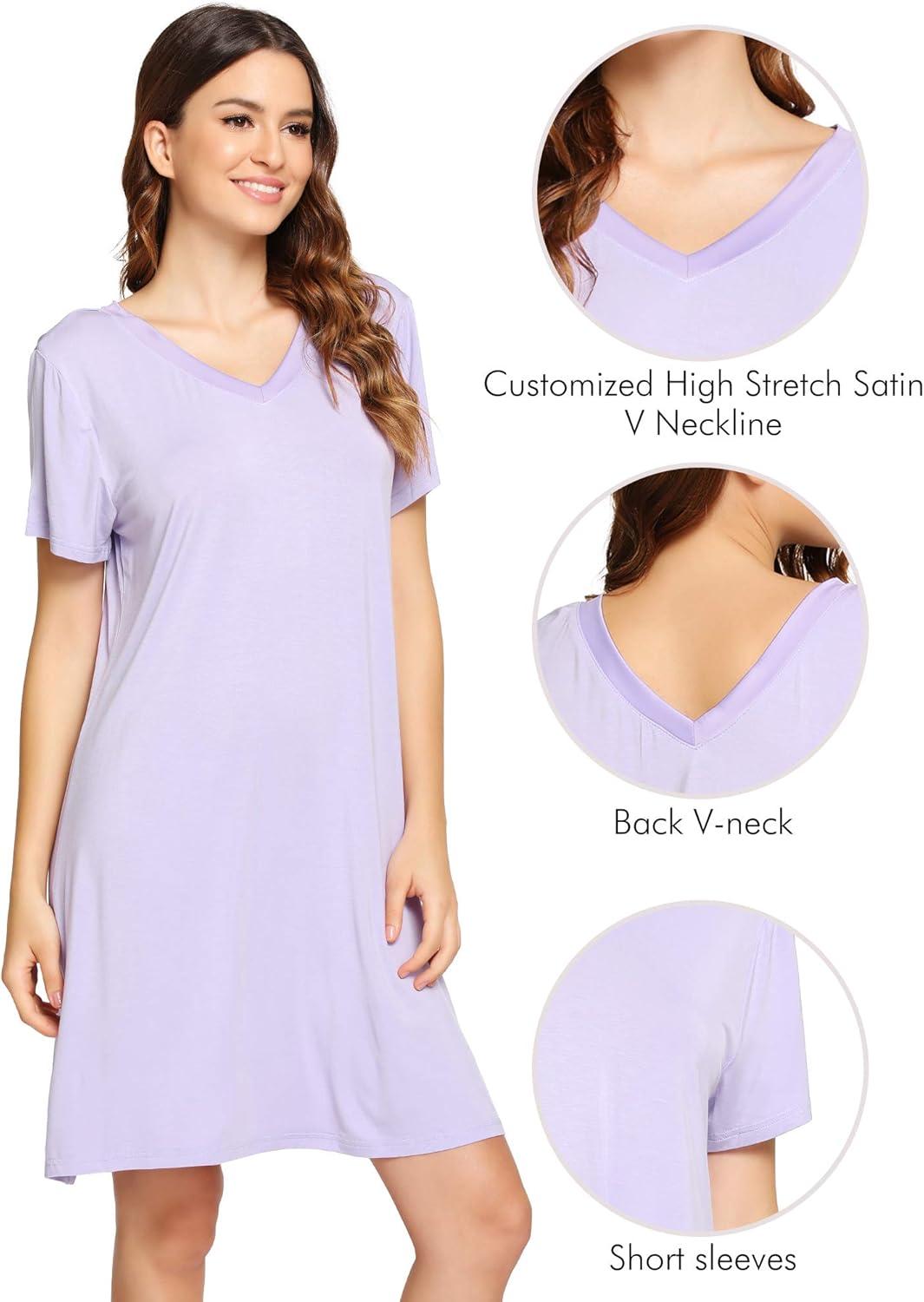 imageWiWi Nightgowns for Women Short Sleeve Sleepwear Soft Bamboo Viscose Pajamas Sleep Shirt Plus Size Loungewear S4XAtaro Purple