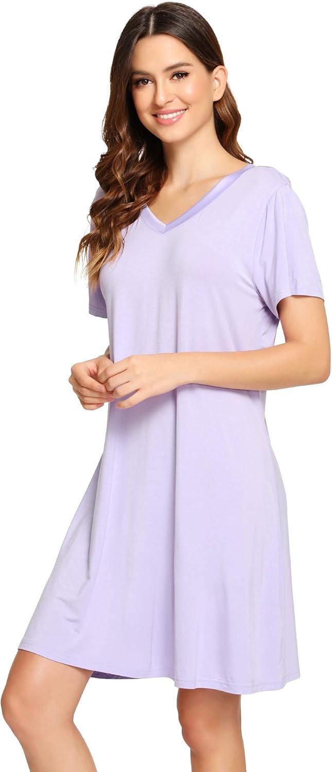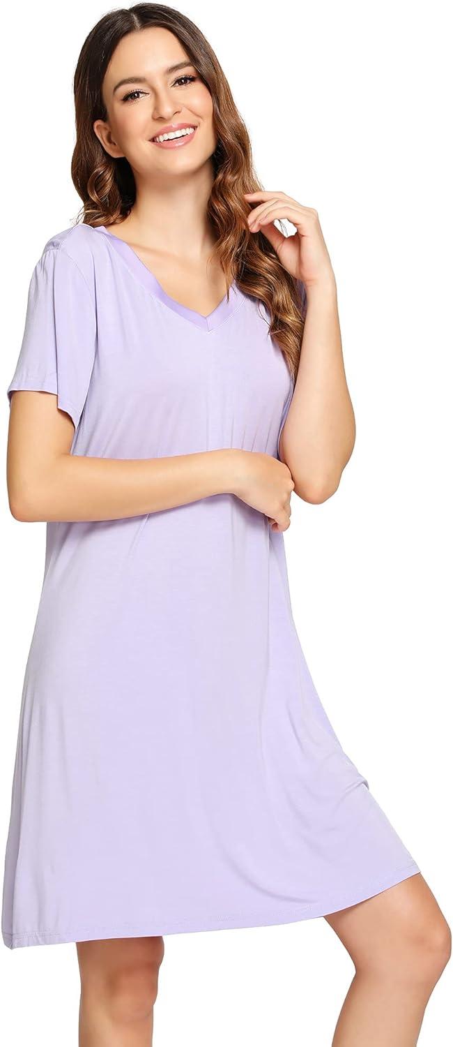 WiWi Nightgowns for Women Short Sleeve Sleepwear Soft Bamboo Viscose Pajamas Sleep Shirt Plus Size Loungewear S-4X(A-taro Purple)