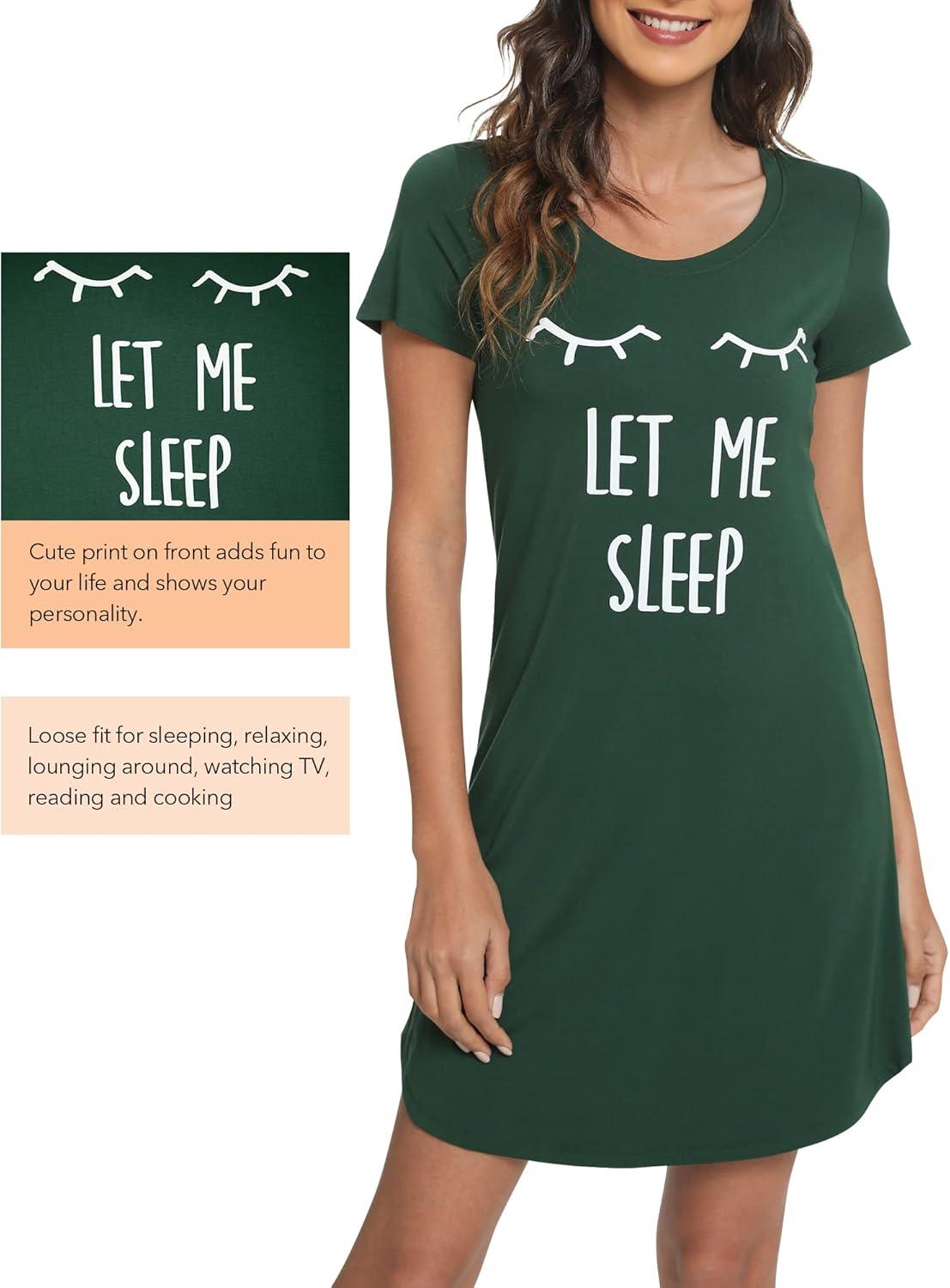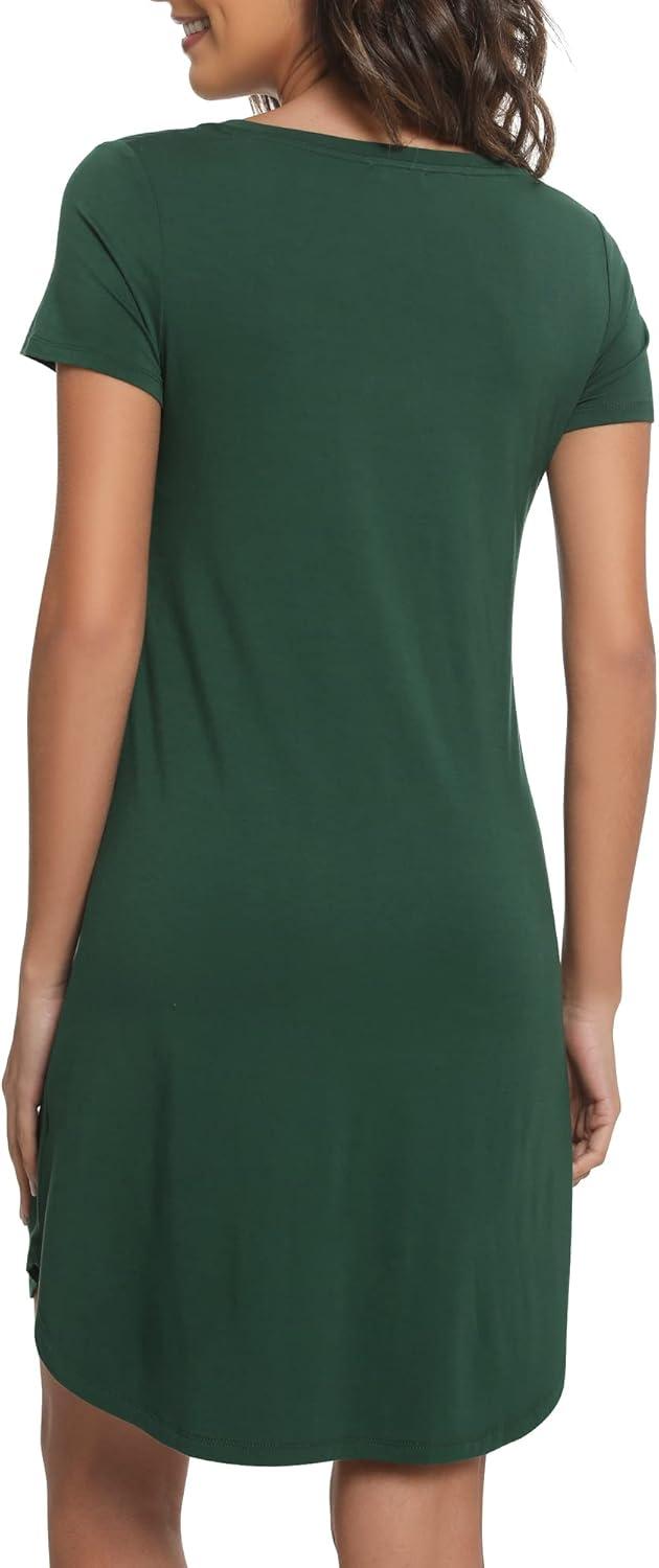 WiWi Nightgowns for Women Short Sleeve Sleepwear Soft Bamboo Viscose Pajamas Sleep Shirt Plus Size Loungewear S-4X(B-deep Green Eye)