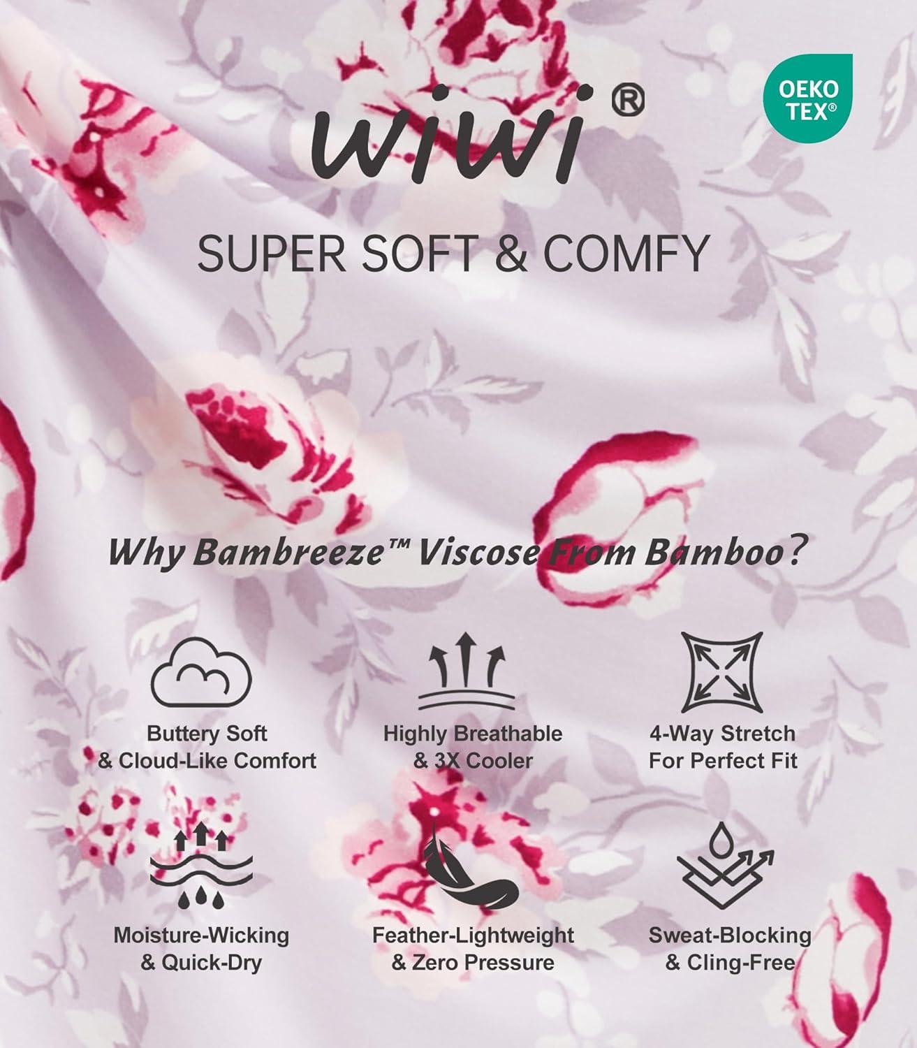 WiWi Nightgowns for Women Soft Sleepwear Long Sleeve Nightshirts Pajamas Gown Viscose from Bamboo Pjs S-XXL(Grey/Peony)
