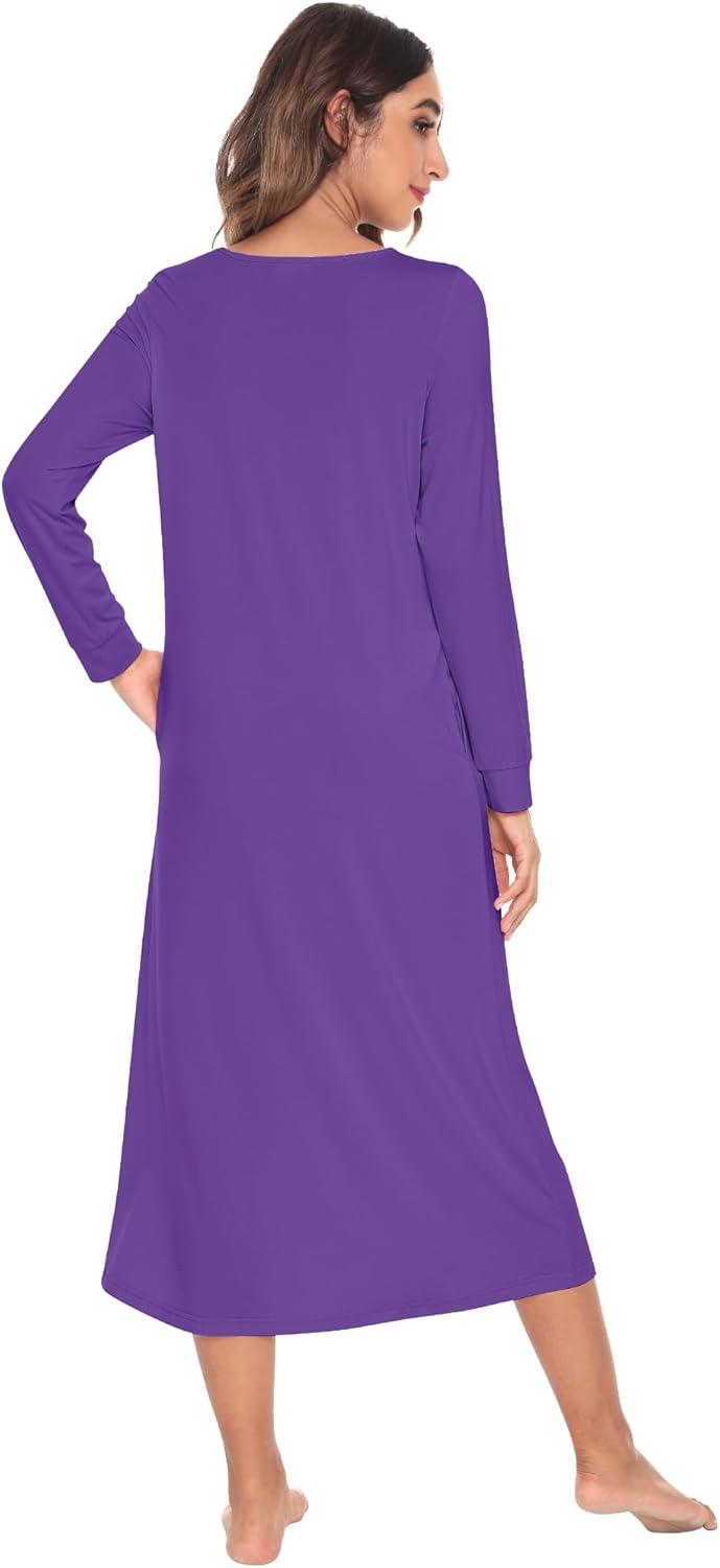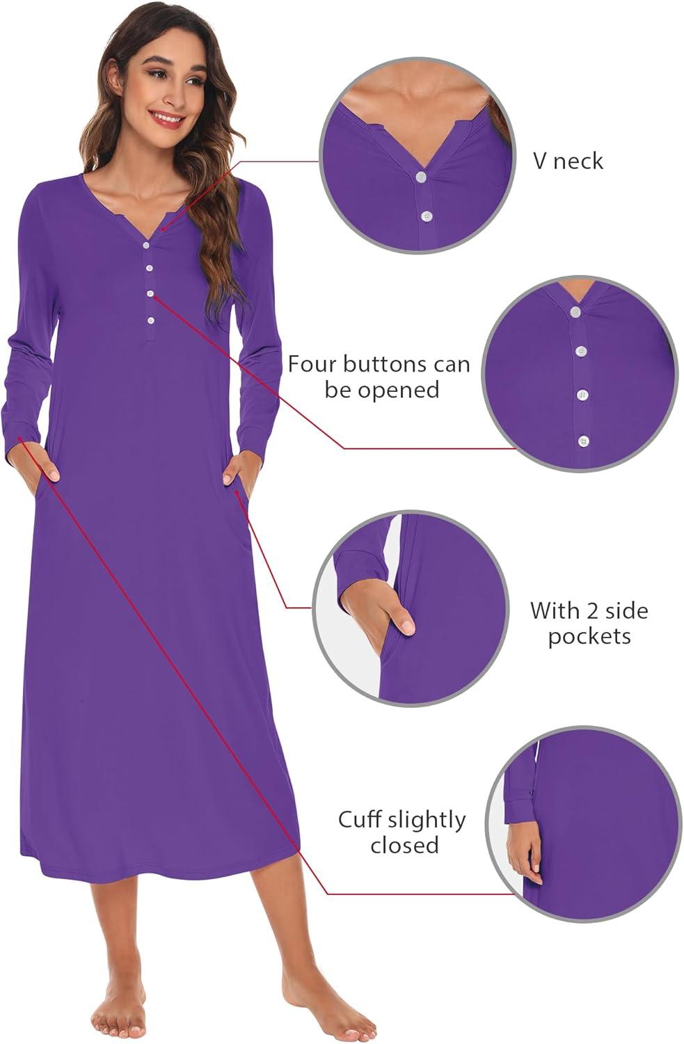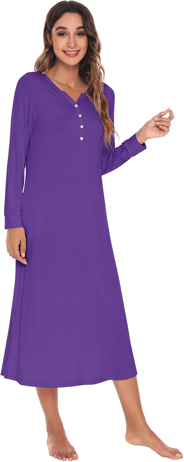 WiWi Nightgowns for Women Soft Sleepwear Long Sleeve Nightshirts Pajamas Gown Viscose from Bamboo Pjs S-XXL(Lilac)