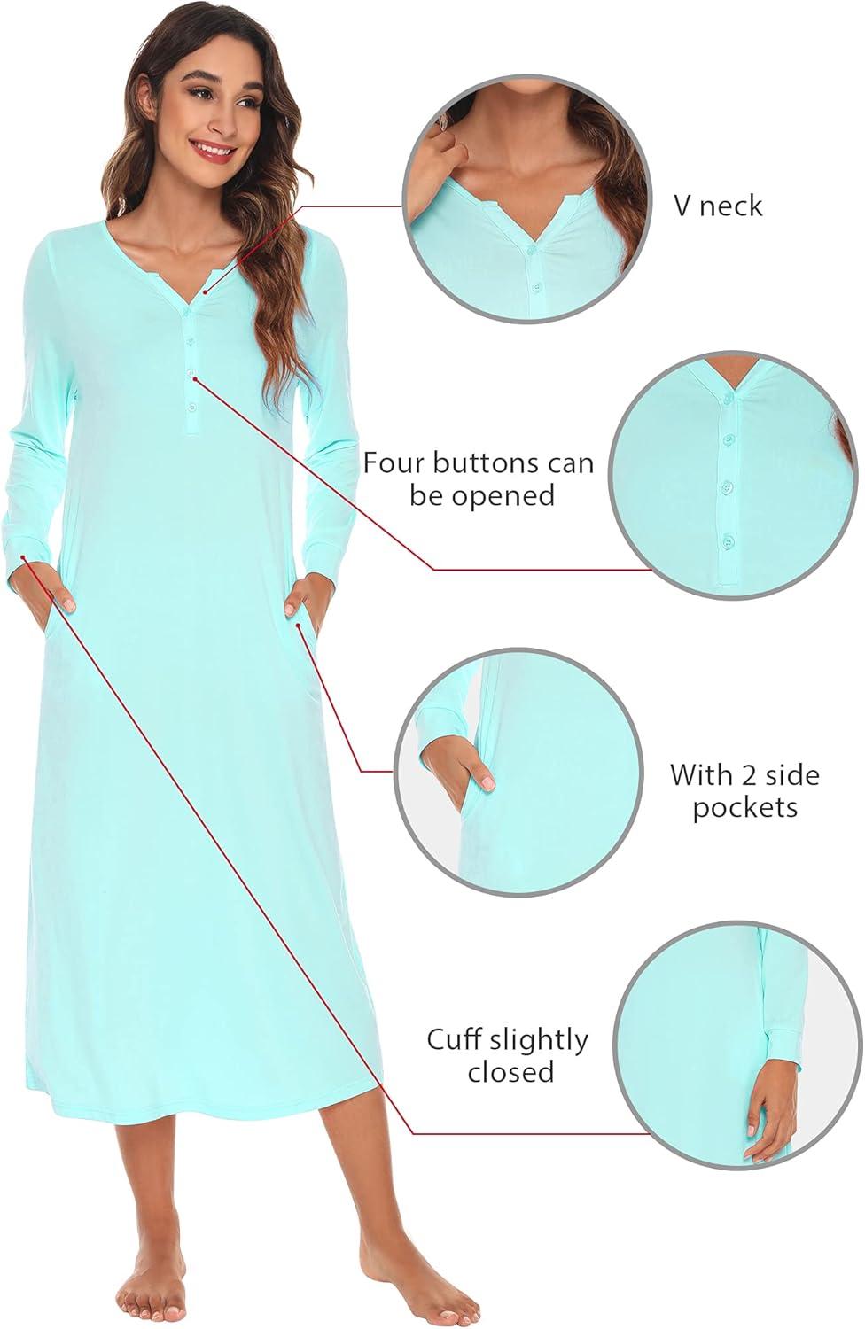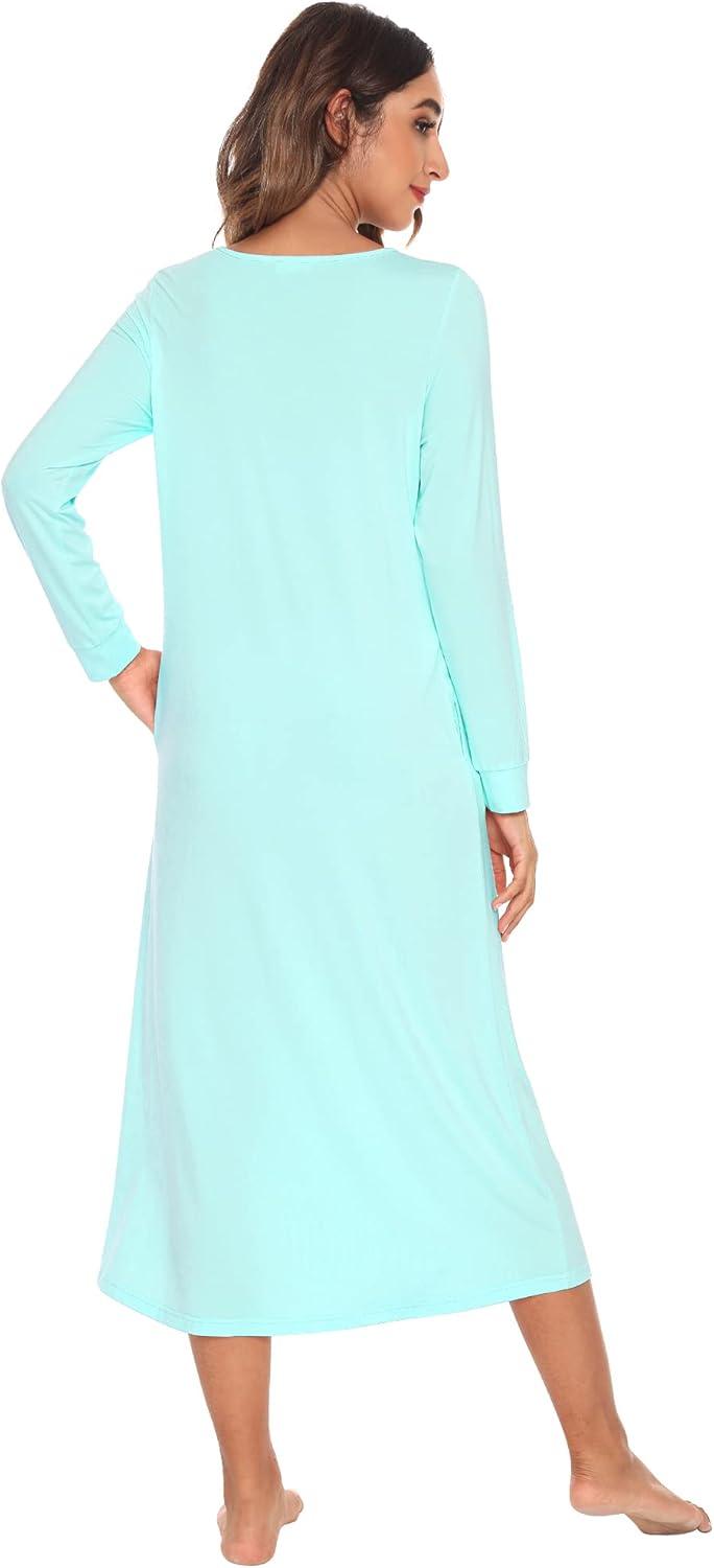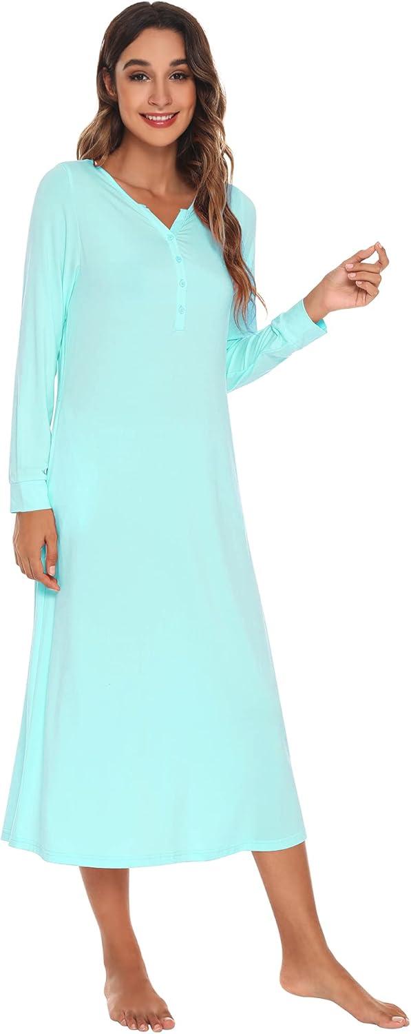 WiWi Nightgowns for Women Soft Sleepwear Long Sleeve Nightshirts Pajamas Gown Viscose from Bamboo Sleepwear S-XXL(A-aqua)