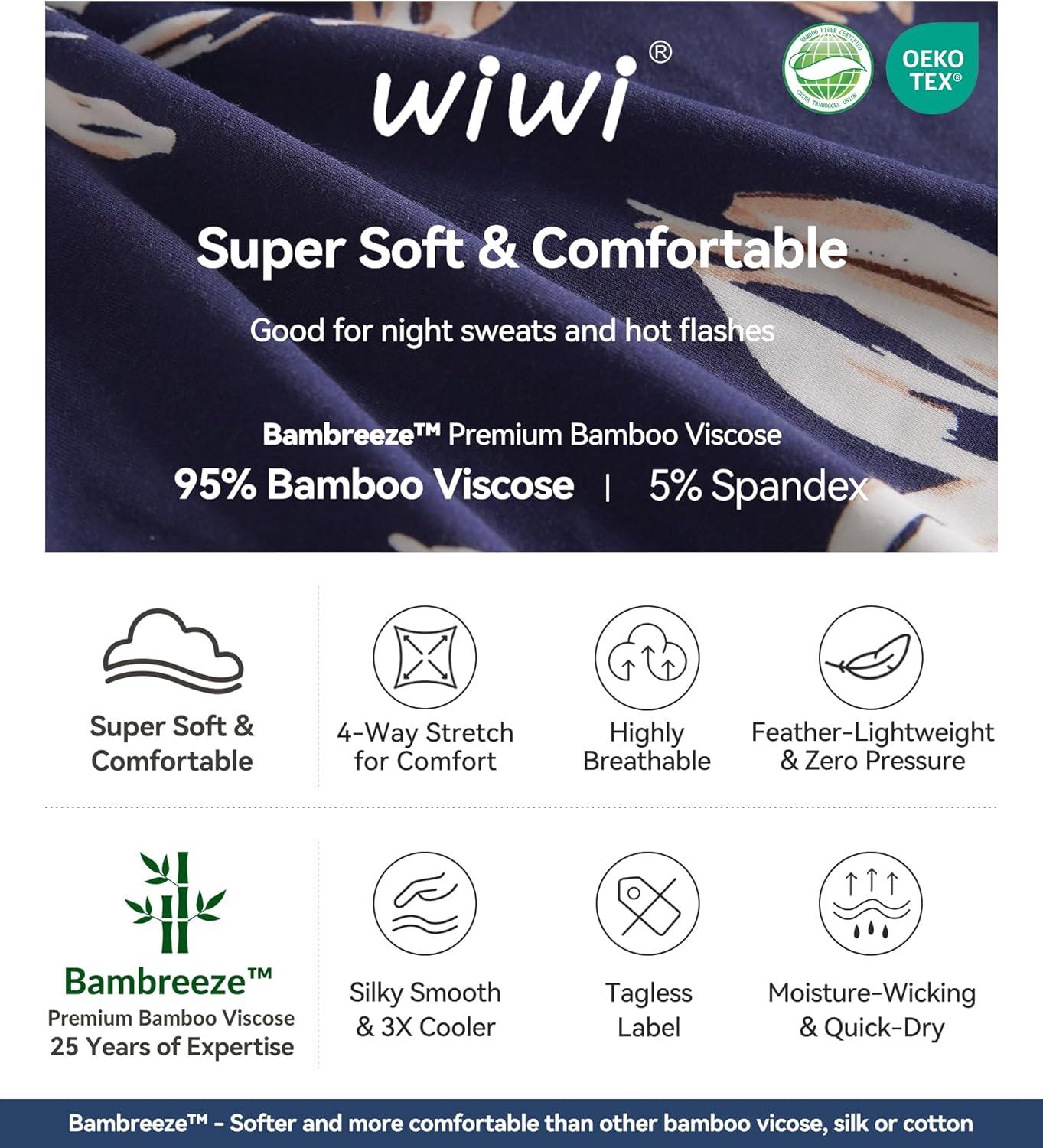 WiWi Nightgowns for Women Soft Sleepwear Long Sleeve Nightshirts Pajamas Gown Viscose from Bamboo Sleepwear S-XXL(A-navy/Peony)