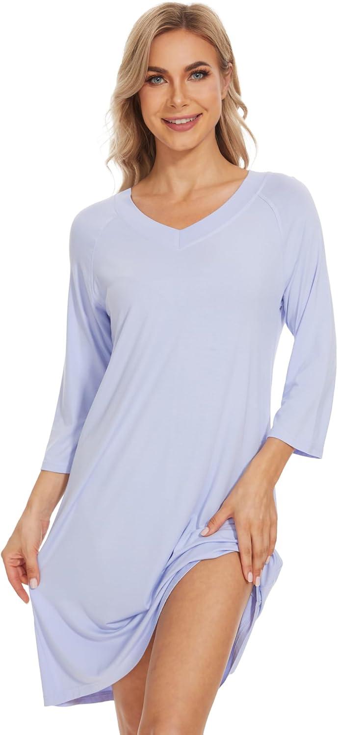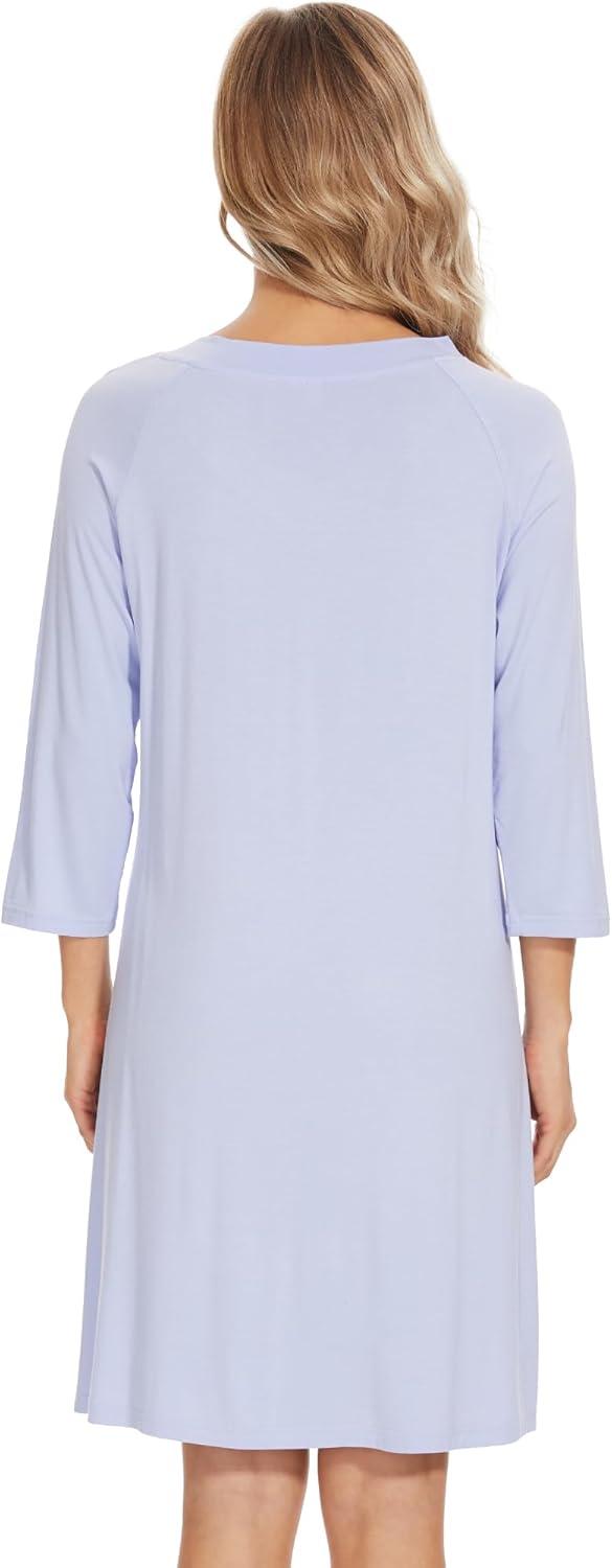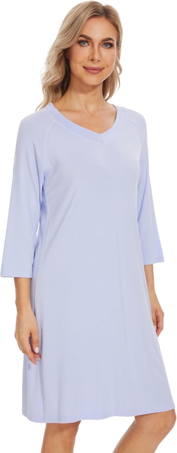 WiWi Nightgowns for Women Viscose from Bamboo 3/4 Sleeve Sleepshirt Soft V-neck Nightshirts Loose Pajama Dress S-XXL(Periwinkle)