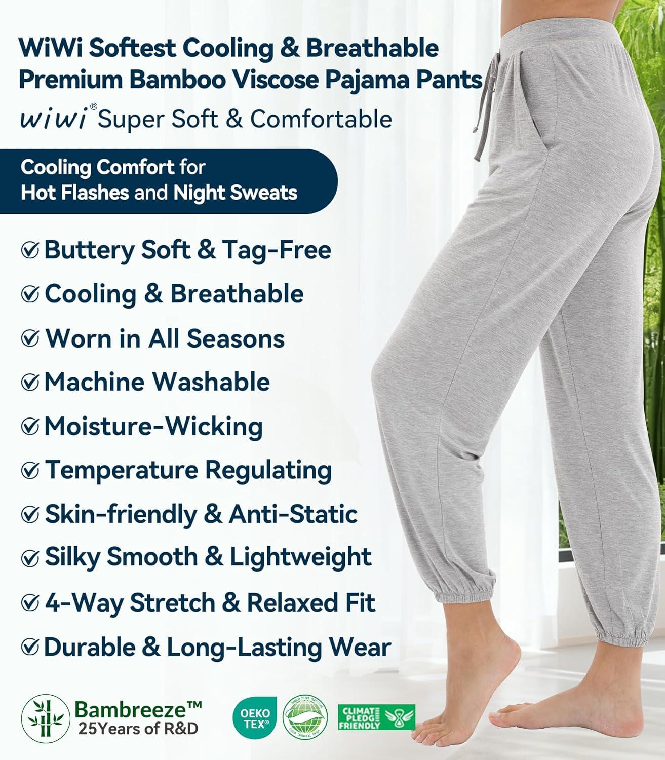 WiWi Pajama Pants for Women Lounge Super Soft Joggers Yoga Viscose from Bamboo Bottoms Cooling Pajamas Pant Sweatpants S-4X(A-ash Grey)